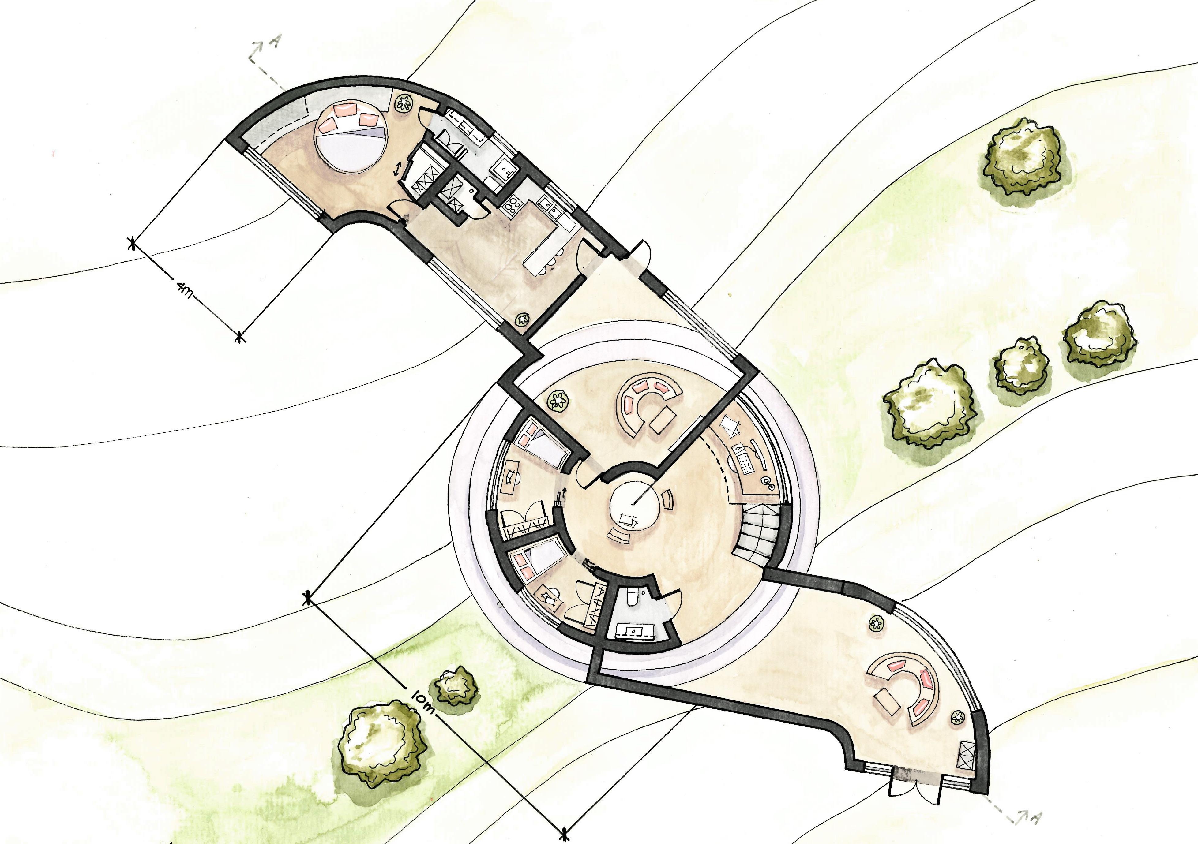My character, Robin Axewood is inspired by the historical link of birds and farming in Laxton, a small rural village known for its open farming system. My final design is inspired by the bird's nest- It's simple yet effective interweaving of sticks and twigs creates a circular shape to nest birds. Axewood's workshop forms the central 'nest'.
