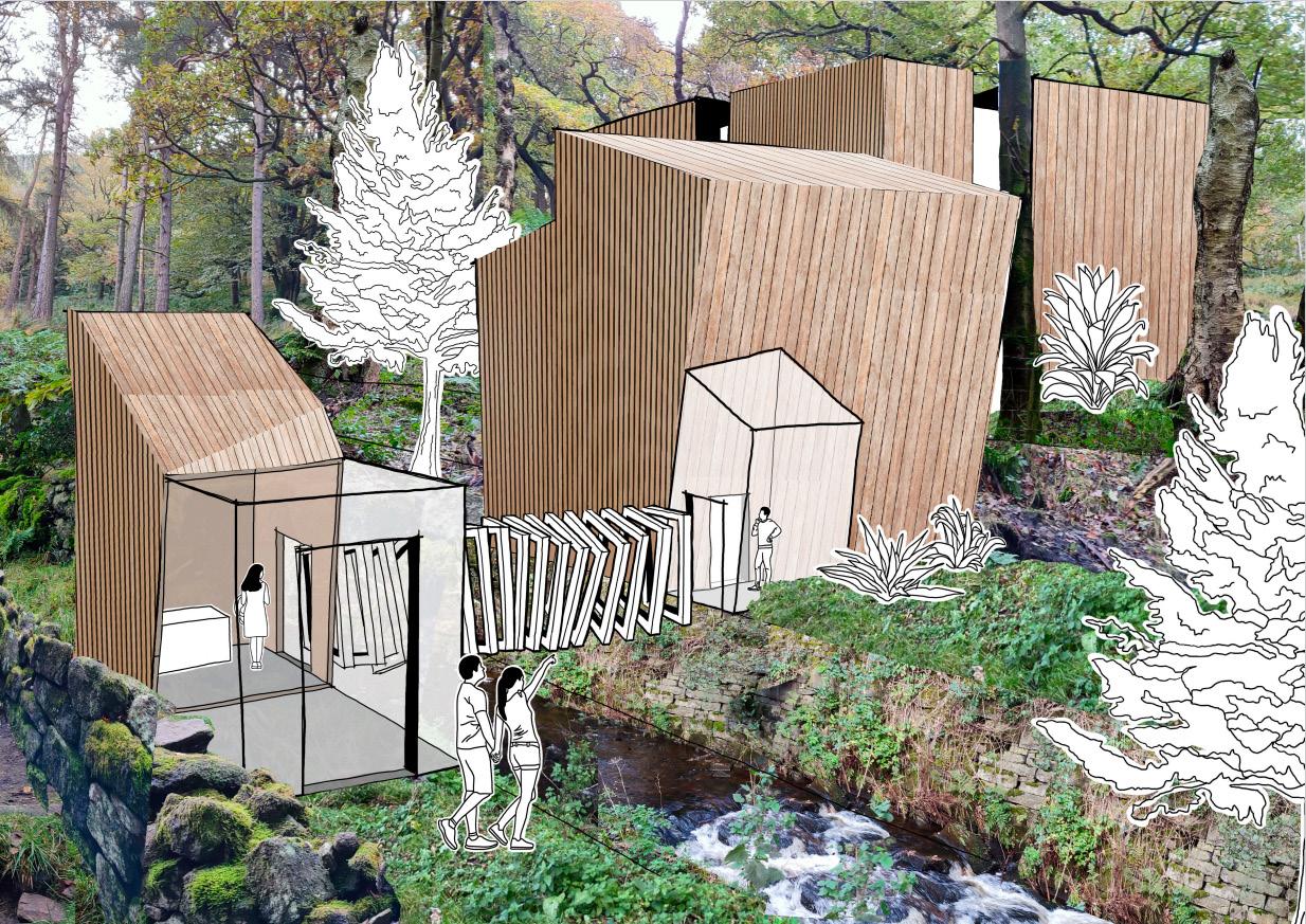 'Form follows Function' reimagines the typical visitor centre by providing a unique experience people can't get online. It is situated in Kinder Scout (part of the Peak District) which is home to a very famous political movement called the Kinder Scout Mass Trespass in 1932. This project aims to introduce more visitors into the Kinder scout region through the celebration of this historical triumph.