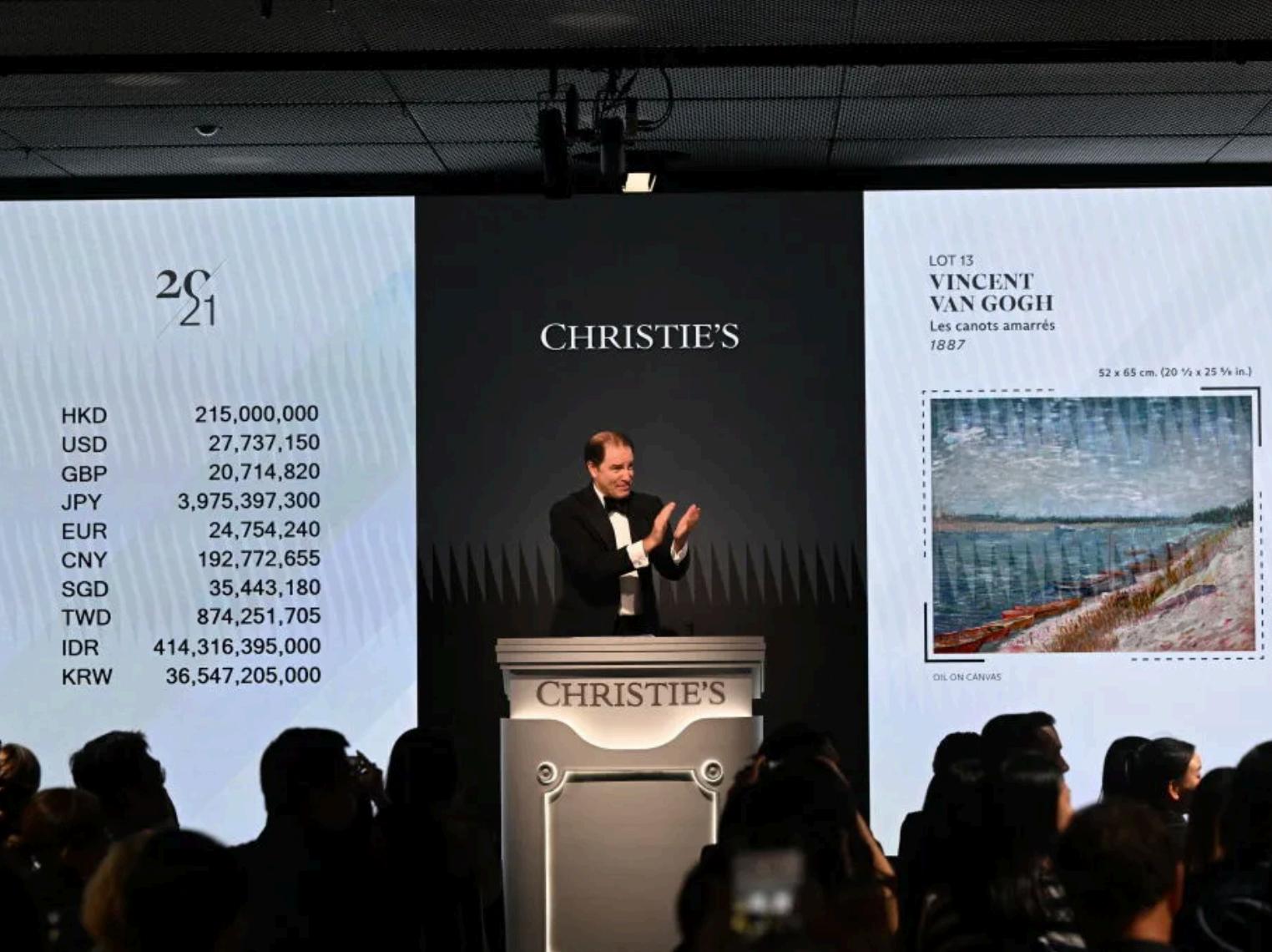 At the inaugural 20th/21st Century sale at Christie's new Hong Kong HQ, a Vincent Van Gogh will be put on the auction block, expected to bring in $50 million. This 1887 piece, Les canots amarrés (The Moored Boats), is owned by Princess Camilla of Bourbon Two Sicilies. The princess decided to sell this beautiful and historic piece in Hong Kong because she was excited by "the rapidly growing and dynamic Asian art market."