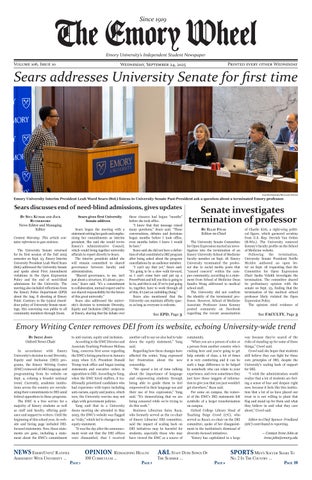 The Emory Wheel Volume 99, Number 19 © 2018 The Emory Wheel Alumni Memorial University Center, Room 401 630 Means Drive, Atlanta, GA, 30322 Business wheelbusinessmanager@gmail.com Editor-in-Chief Julia Munslow julia.munslow@emory.edu Founded in 1919, The Emory Wheel is the financially and editorially independent, student-run newspaper of Emory University in Atlanta. The Wheel is a member publication of Media Council, Emory’s organization of student publications. The Wheel reserves the rights to all content as it appears in these pages, and permission to reproduce material must be granted by the editor-in-chief. The Wheel is printed every Wednesday during the academic year, except during University holidays and scheduled publication intermissions. A single copy of the Wheel is free. To purchase additional copies, please email emorywheelexec@gmail.com. The statements and opinions expressed in the Wheel are those of the authors and do not necessarily reflect those of the Wheel’s Editorial Board or of Emory University, its faculty, staff or administration. The Wheel is also available online at www.emorywheel.com.