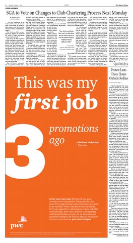 tered. Additionally, the clubs needed will make the final decision based approval of its representative divi- on SGA and divisional requirements. sional council based on its respective If the division approves the club, the requirements. division classifies the club in one of The new process retains the SGA two account types: a self-generated and University-wide requirements, account or an allocated account. but adds the timeA self-generated frame by which the account classificadivisional councils has room res“One of the push backs tion approve clubs. ervation rights, the After a club has [last year] was that there ability to rent equipmet the initial SGA was no concern given to ment and access to a requirements, the how divisional councils self-generated fund. requestor will fill However, it does not would feel about out an online form have access to supthat is sent to SGA plemental funding different clubs.” Attorney General, from the divisional who then forwards — David Kaplan, council or SGA. it to the appropriThis classificafull-time MBA student, SGA ate divisional countion costs clubs Governance Committee chair cil. The divisional $25. Once members council has 14 days pay the SGA busito make a decision. ness manager, they receive access to If the divisional council does not rooms. make a decision in two weeks, the An allocated account classificarequestor can contact the SGA attor- tion allows a club to request suppleney general, who will give the divi- mental funding from a divisional sion an extra three days to make the council or SGA. Divisional councils decision. If the division still has not may also provide initial funding at made a decision, the attorney general their discretion.