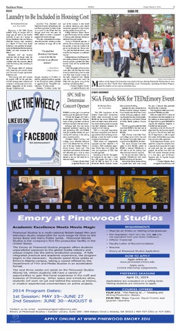 Laundry to Be Included in Housing Cost By Stephen Fowler Asst. News Editor Beginning in fall 2014, Emory students living on campus will no longer pay per load to use laundry machines as part of a change to Emory Residence Life and Housing (ResLife) housing rates, according to a March 17 email from Bryce Robertson, vice president of advocacy for the Residence Hall Association (RHA) and sales associate for the Wheel. Residents will use laundry machines free of charge under the new plan, as the machines will be included under the amenities offered under the housing rates, according to the email. The changes affect all residence halls, fraternity and sorority houses and Clairmont Campus apartments, Robertson said. “The housing rates will increase by roughly 2.5% for the next year, and that increase covers inflation and increases in utility prices and is completely independent of the laundry changes,” Robertson said.