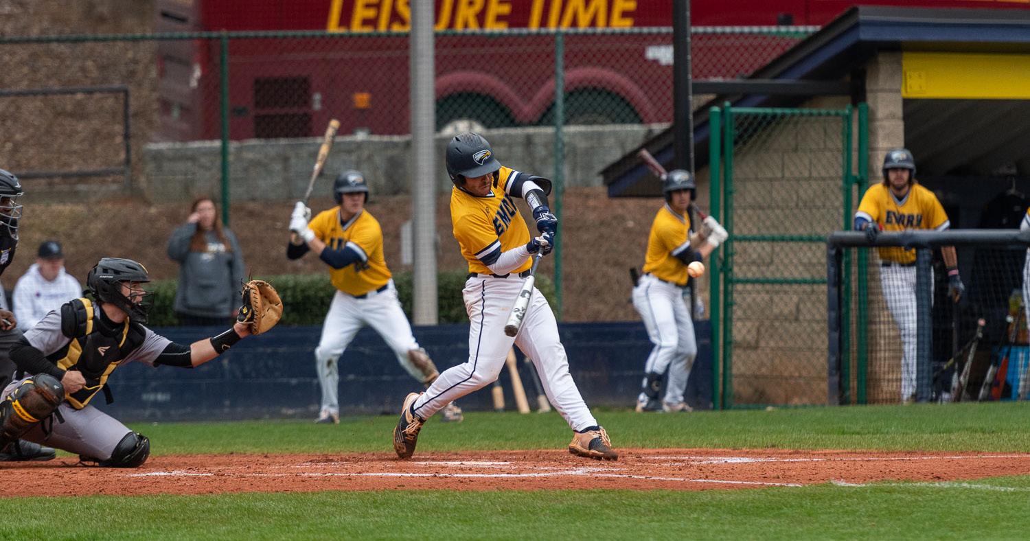 Sophomore infielder Jack Halloran hits a fly ball to left field during a game against Oglethorpe University (Ga.) on Feb. 25.