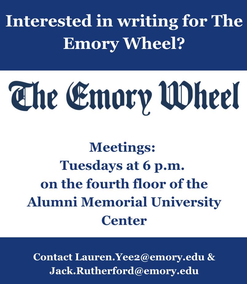 The statements and opinions expressed in the Wheel are those of the authors and do not necessarily reflect those of the Wheel Editorial Board or of Emory University, its faculty, staff or administration.