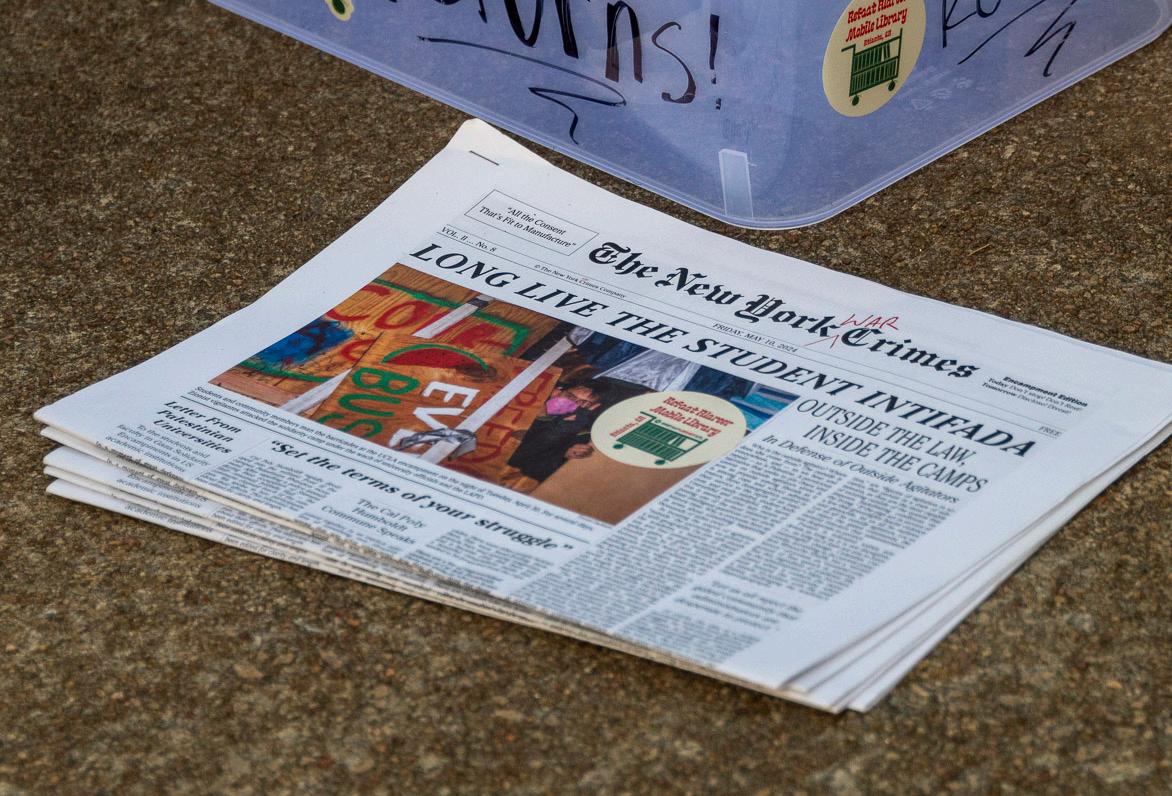 Nata Lie sa NdLow/Visua L editor Protestors display faux copies of The New York Times.