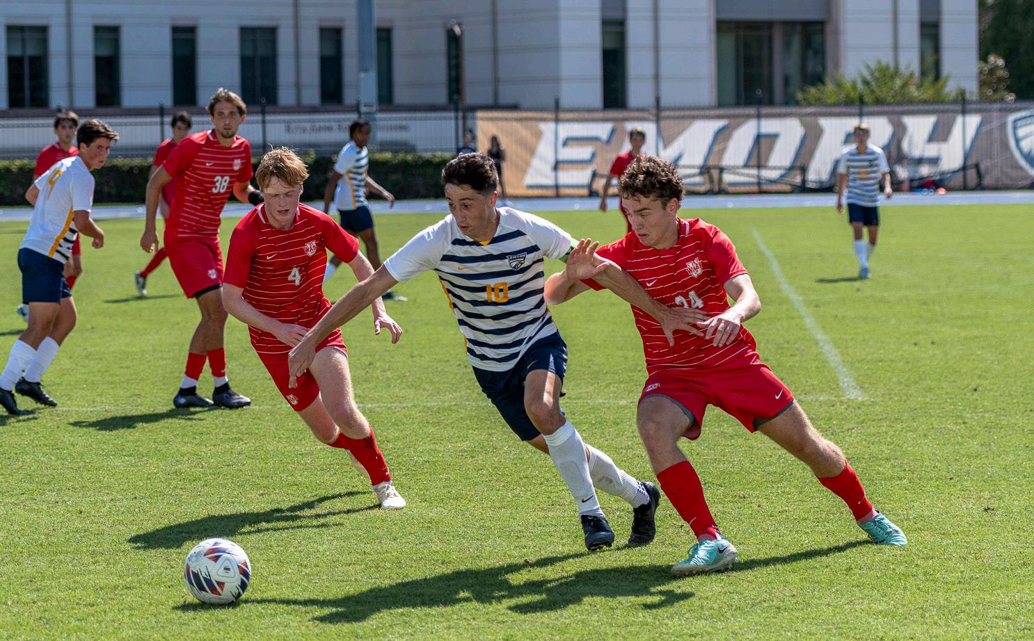 The Emory University men’s and women’s soccer teams opened United Athletic Association (UAA) conference play by hosting Washington University in St. Louis (Mo.) (WashU) on Oct. 5. The women’s team fell 2-1 to No. 1 WashU, and the men’s team won 5-2.