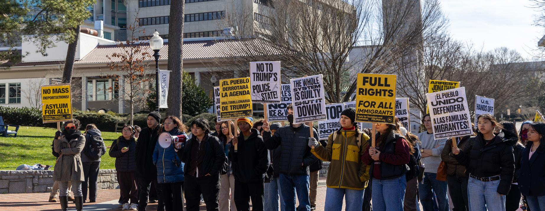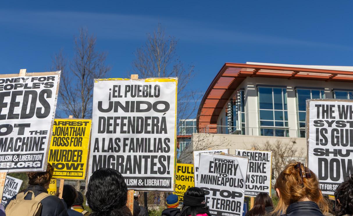This reaction has spread to Emory University, where about 70 community members gathered in Asbury Circle on Tuesday to protest against these recent actions by ICE. Emory Students for Socialism (SFS) organized the event with speakers from Sunrise Emory and the Atlanta branch of the Party for Socialism and Liberation.