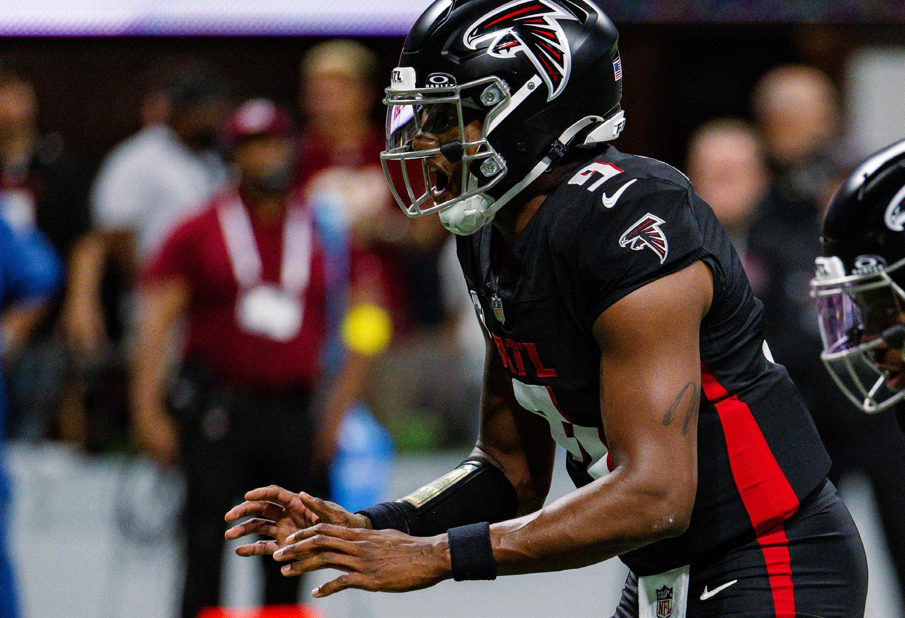 Falcons quarterback Michael Penix Jr. lines up in shotgun formation for a snap against the Washington Commanders during week four of the 2025 NFL season.
