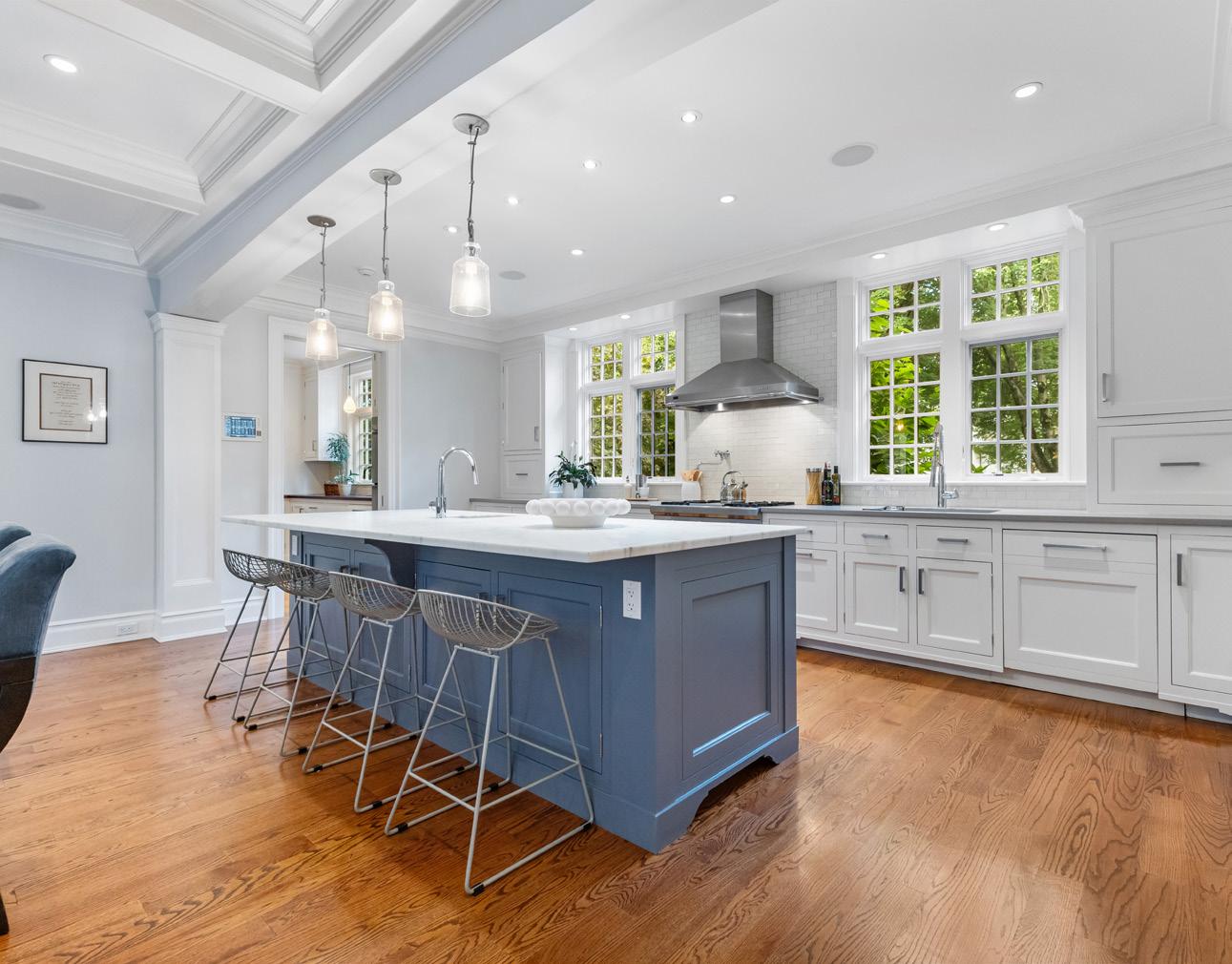 • Caesarstone counters throughout kitchen; island with Carrara marble counter