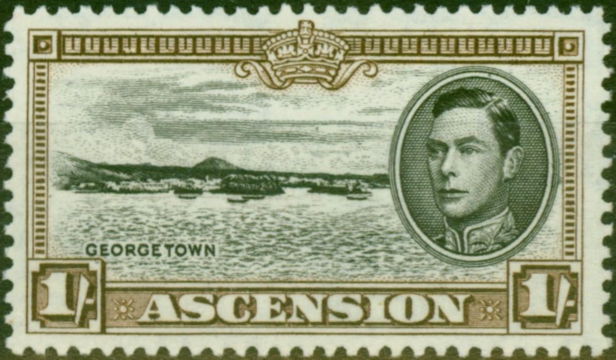 Ascension 1944 1s Black & Sepia SG44a P.13 V.F MNH