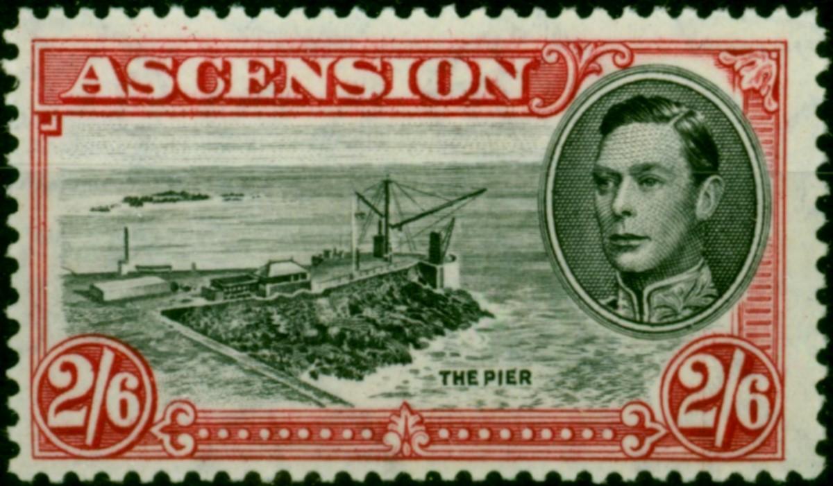 Ascension 1944 2s6d Black & Deep Carmine SG45c P.13 V.F MNH