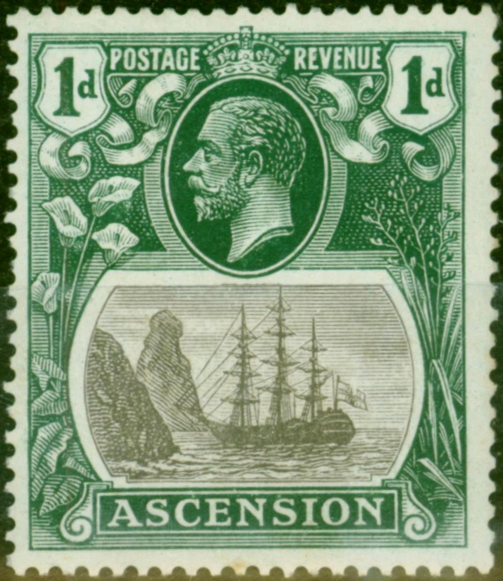 Ascension 1924 1d Grey-Black & Deep Blue-Green SG11b 'Torn Flag' Fine & Fresh LMM