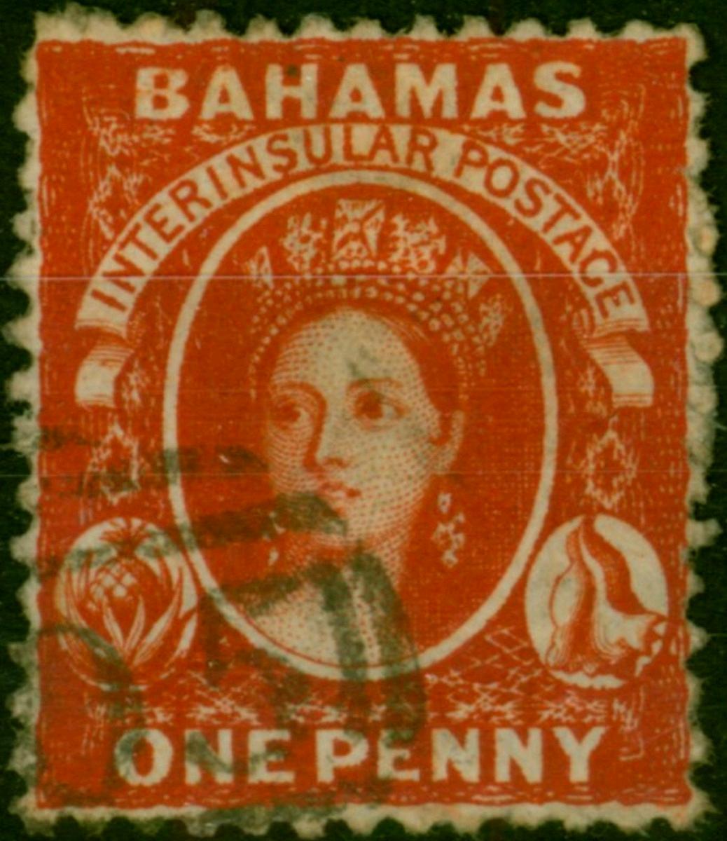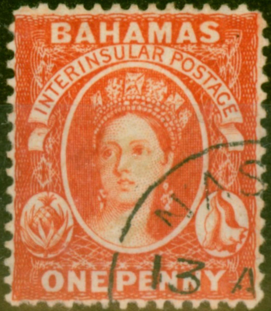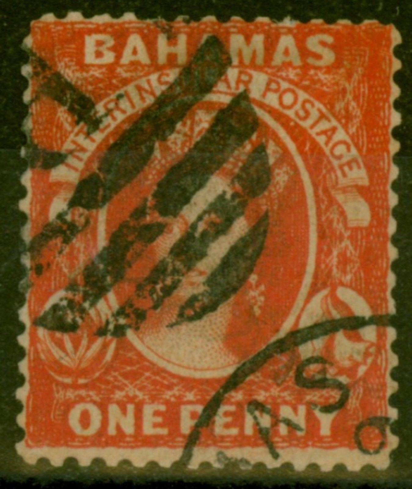 Bahamas 1877 1d Scarlet Aniline SG34 V.F.U Forged Cancel