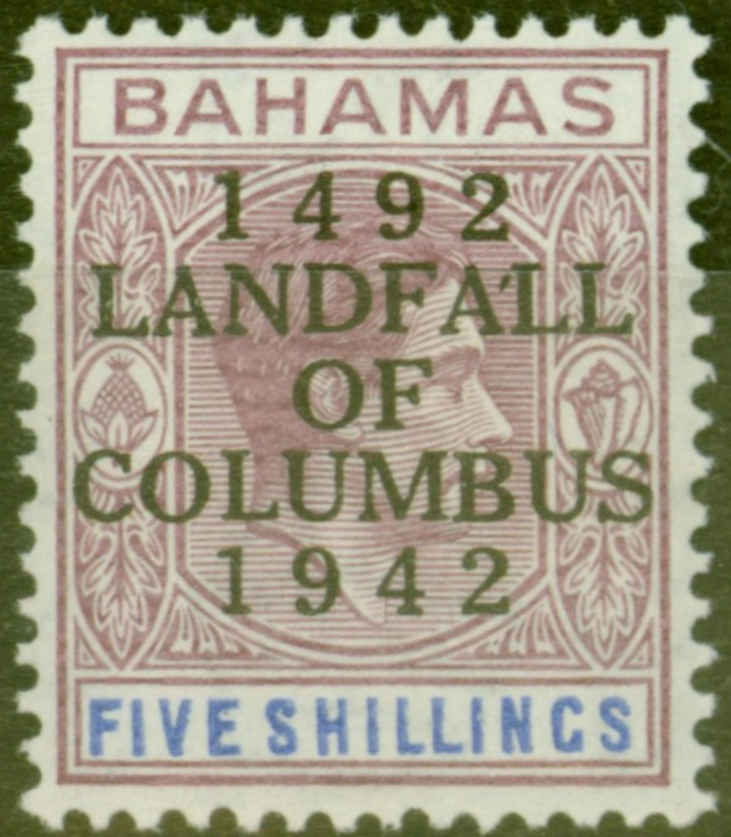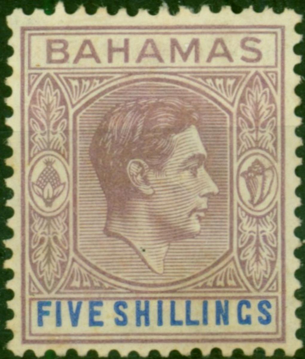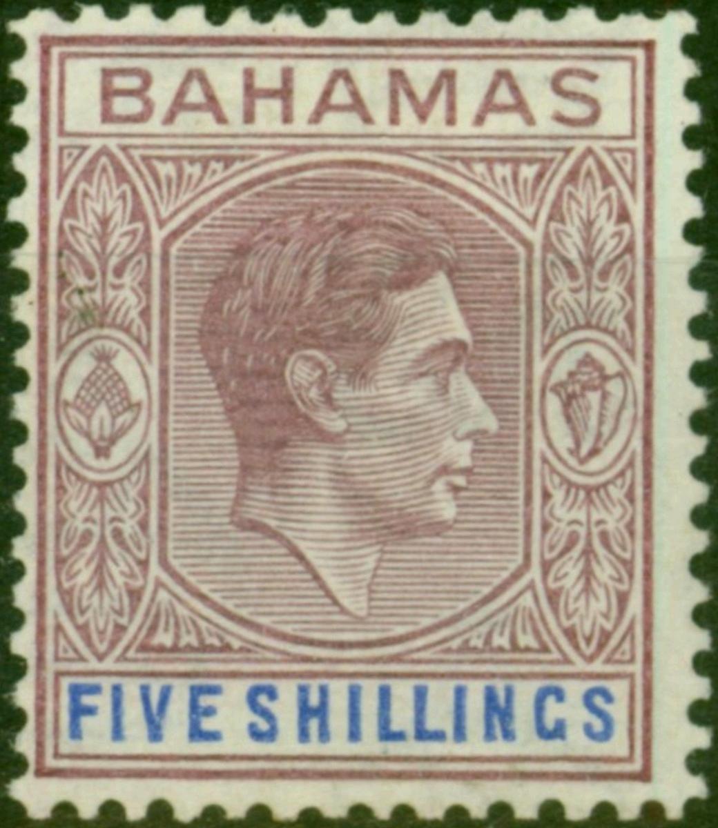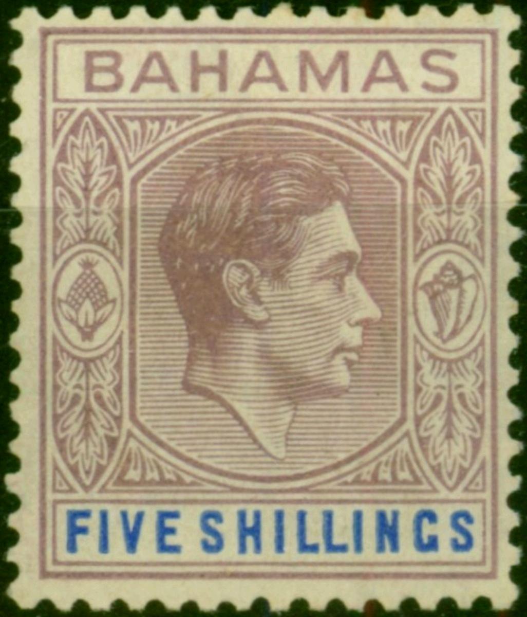 Bahamas 1942 5s Reddish Lilac & Blue Thin Striated Paper SG156a Fine & Fresh LMM Rare