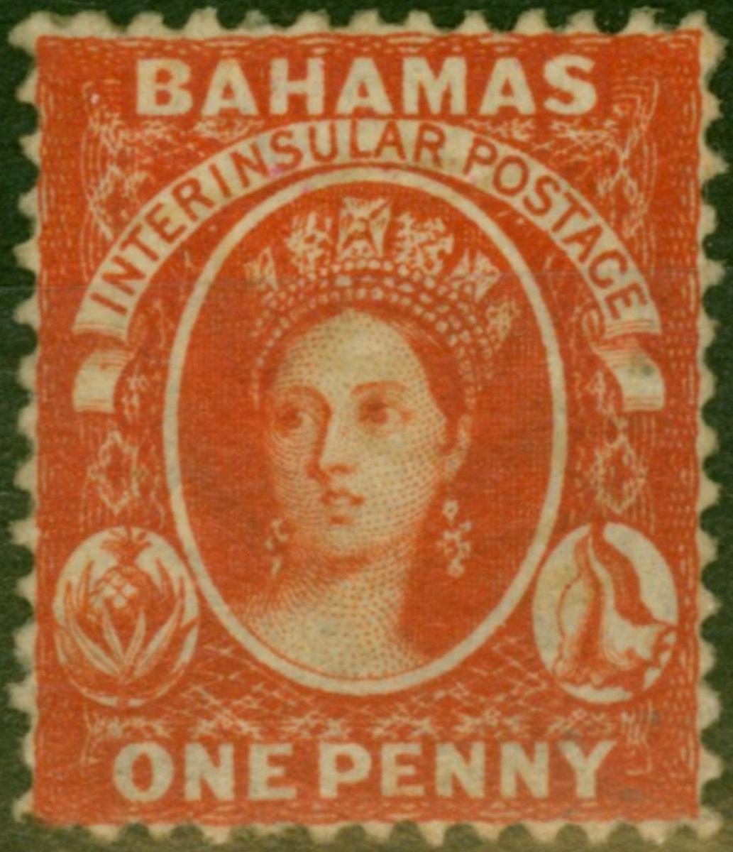 Bahamas 1875 1d Vermilion SG25y Wmk Inverted & Reversed Fine Unused