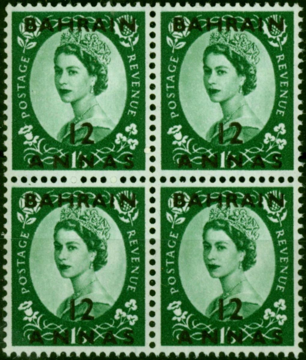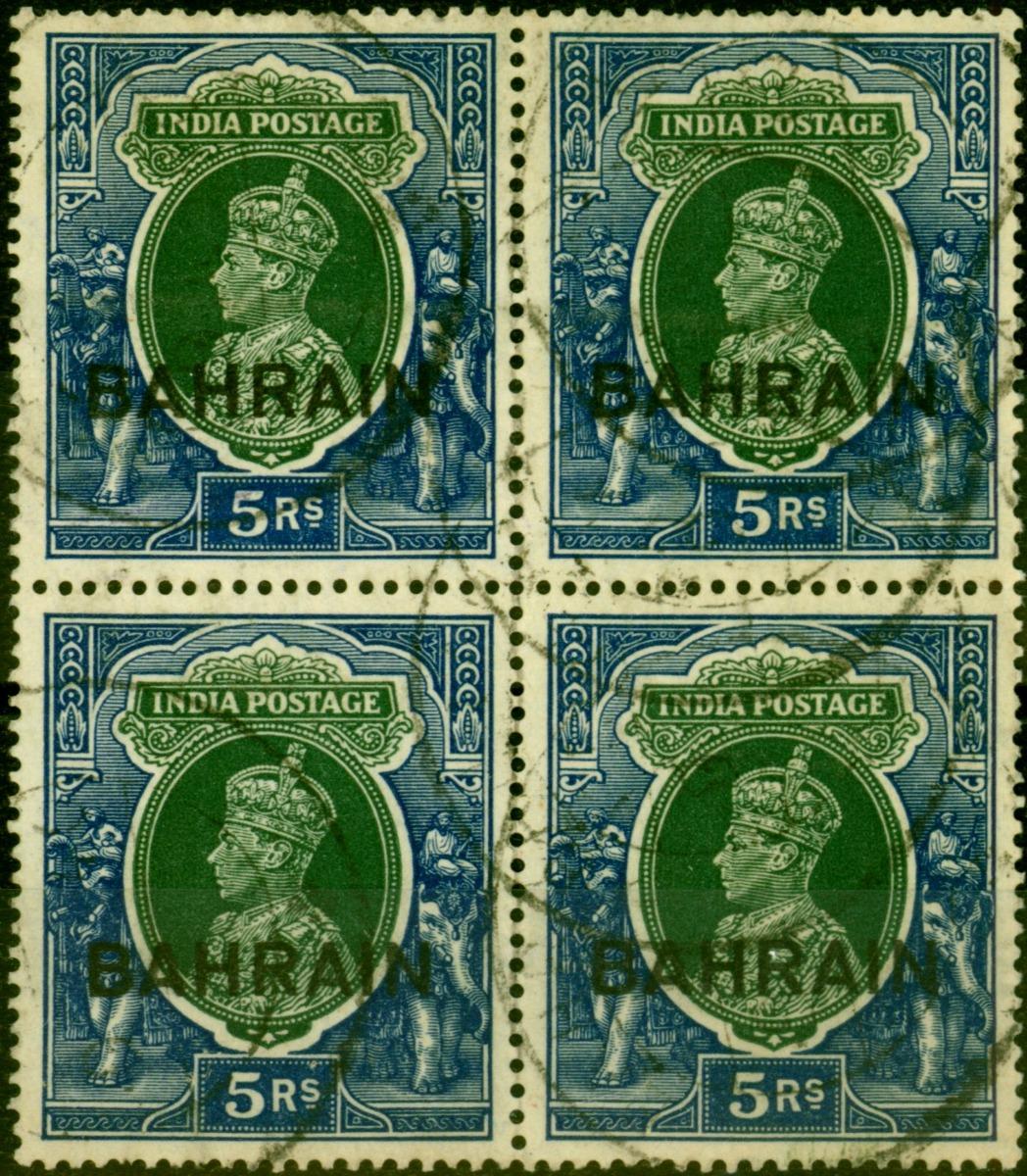 Bahrain 1940 5R Green & Blue SG34 Fine Used Block of 4