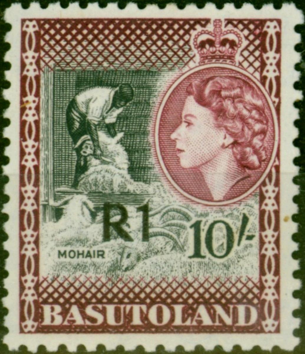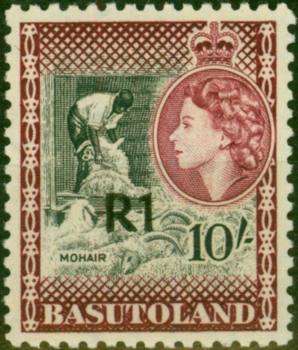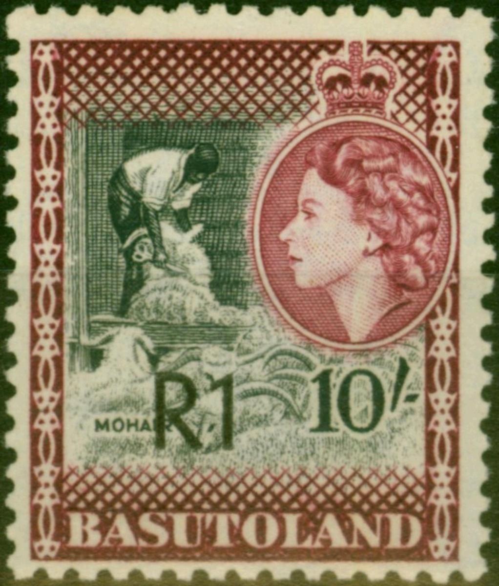 Basutoland 1961 1R on 10s Black & Maroon SG68b Type III V.F MNH