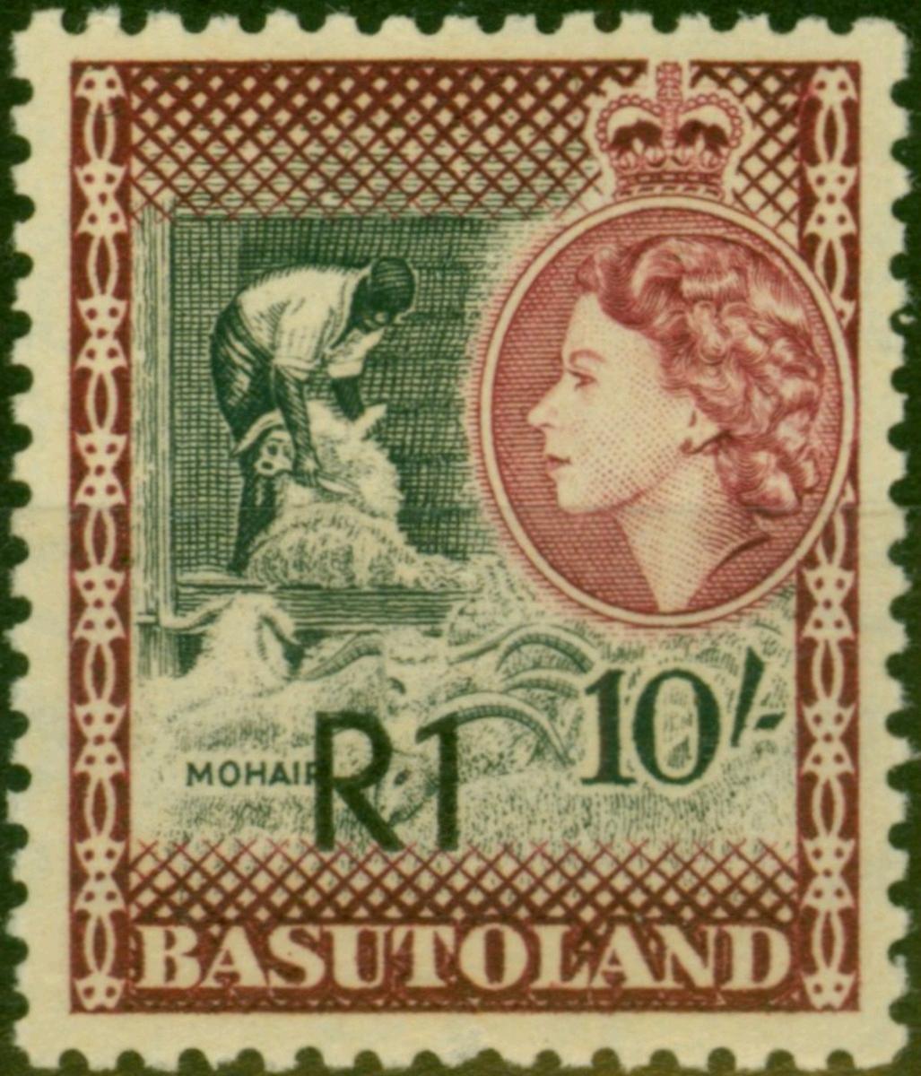 Basutoland 1961 1R on 10s Black & Maroon SG68b Type III V.F VLMM