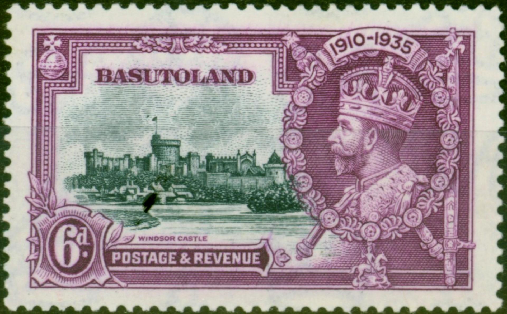 Basutoland 1935 Jubilee 6d Slate & Purple SG14h 'Dot by Flagstaff' V.F VLMM