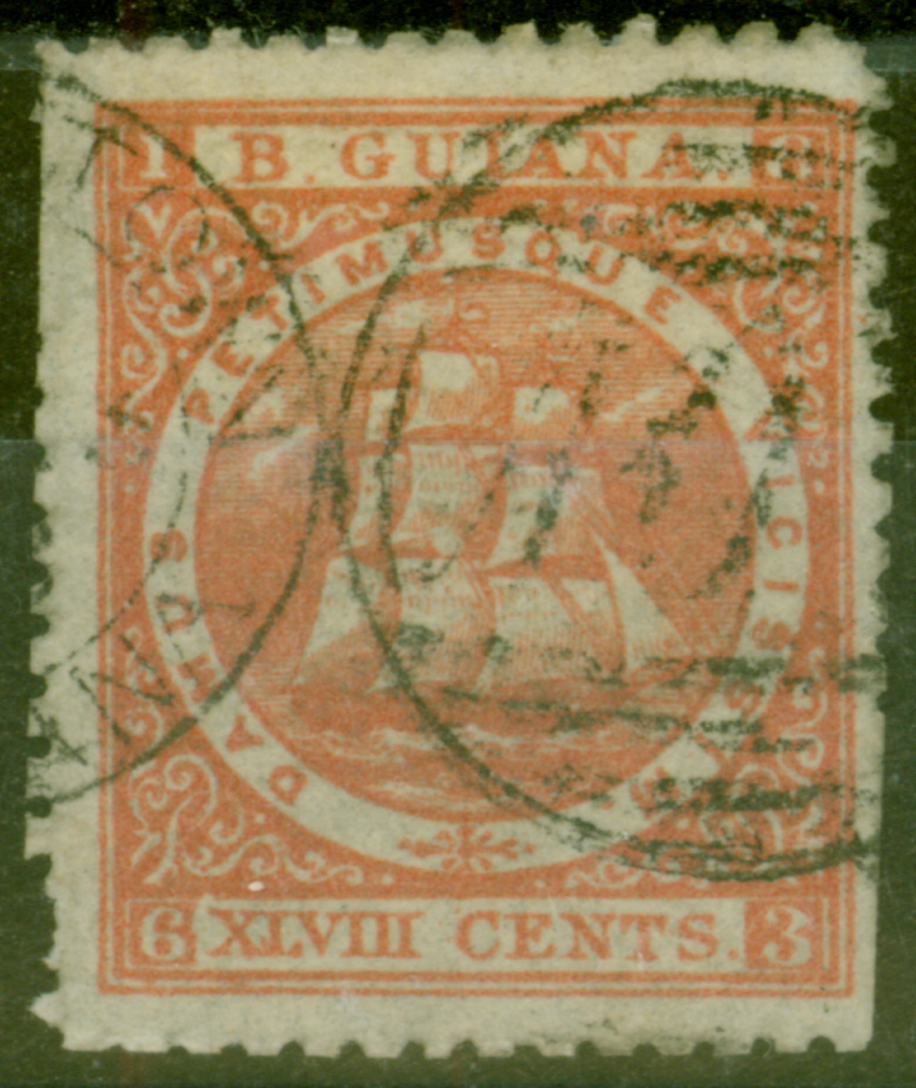 British Guiana 1863 48c Dp Red SG83 Ave Used Ex-Fred Small