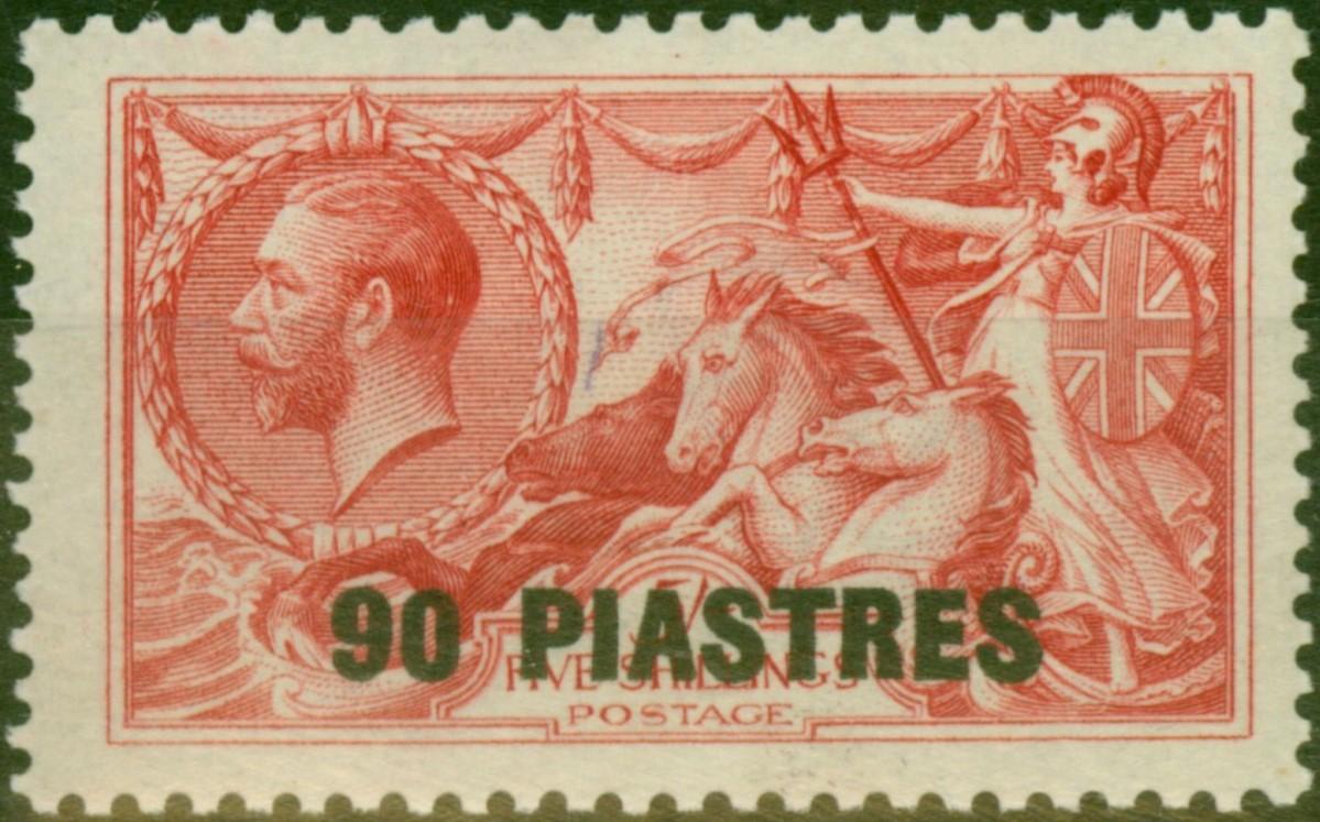 British Levant 1921 90pi on 5s RoseCarmine SG49 Fine LMM (2)
