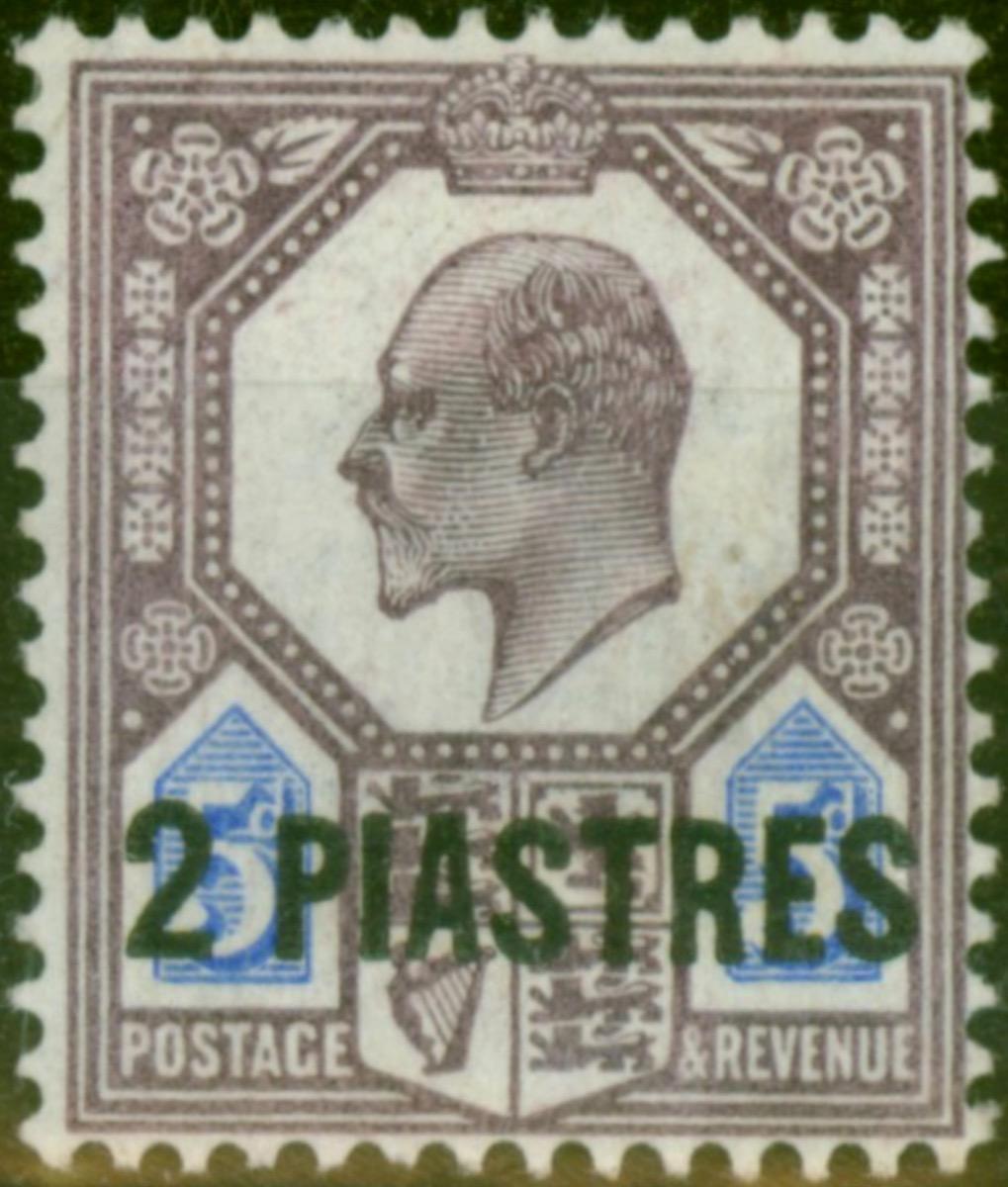British Levant 1908 2pi on 5d SlatePurple & Ultramarine SG14ab Fine Mint