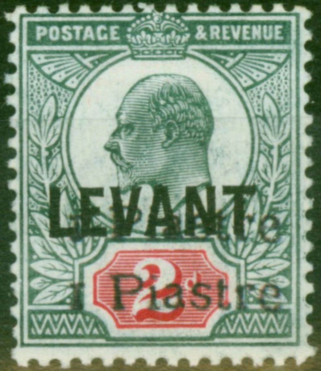 British Levant 1906 1pi on 2d GreyGrn & Carmine SG15var Surch Double Forgery Fine LMM