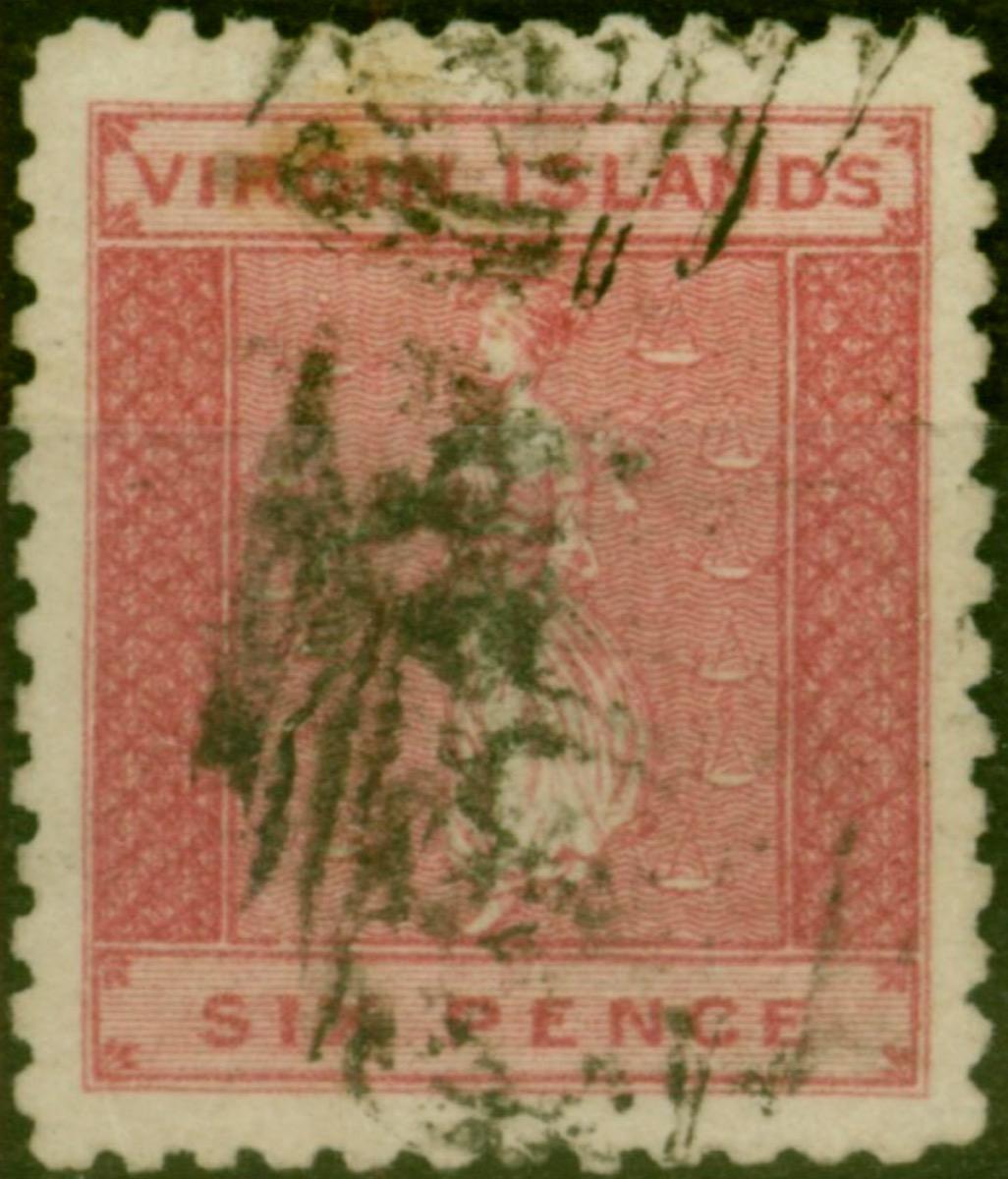 Virgin Islands 1866 6d Rose SG3 Fine Used 'A91 Duplex'