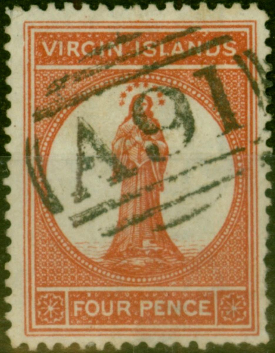 Virgin Islands 1888 4d on 1s Black & Rose-Carmine SG42 Fine Used (3)