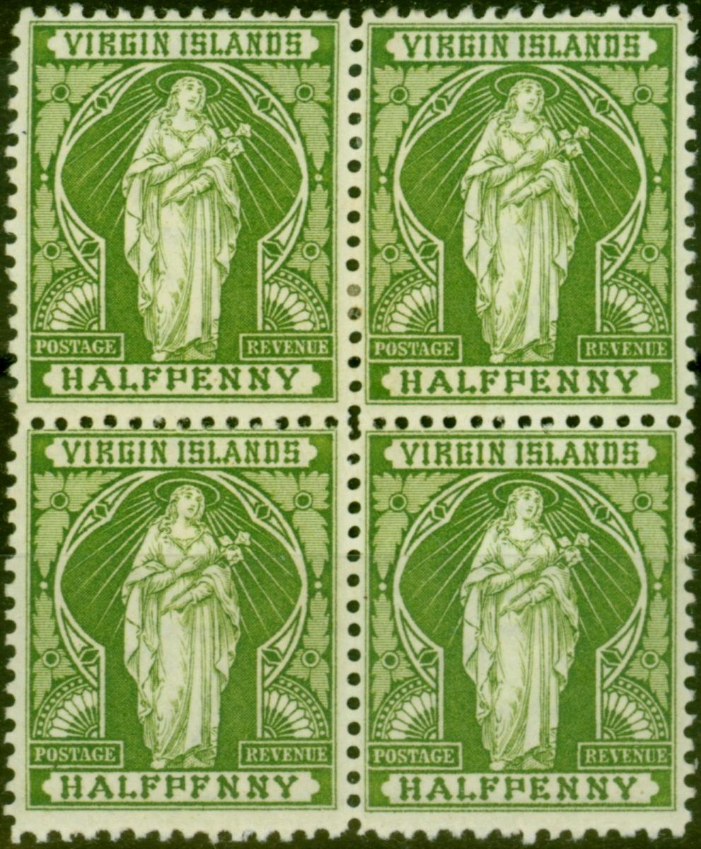 Virgin Islands 1899 1/2d YellowGreen SG43a 'HALF PFNNY' V.F MNH & LMM Block of 4