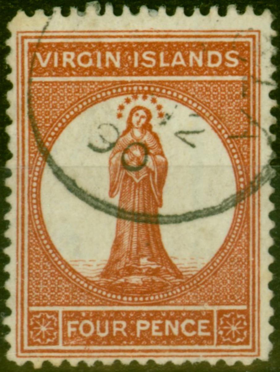 Virgin Islands 1899 4d Brown SG46 Fine Used on Small Piece