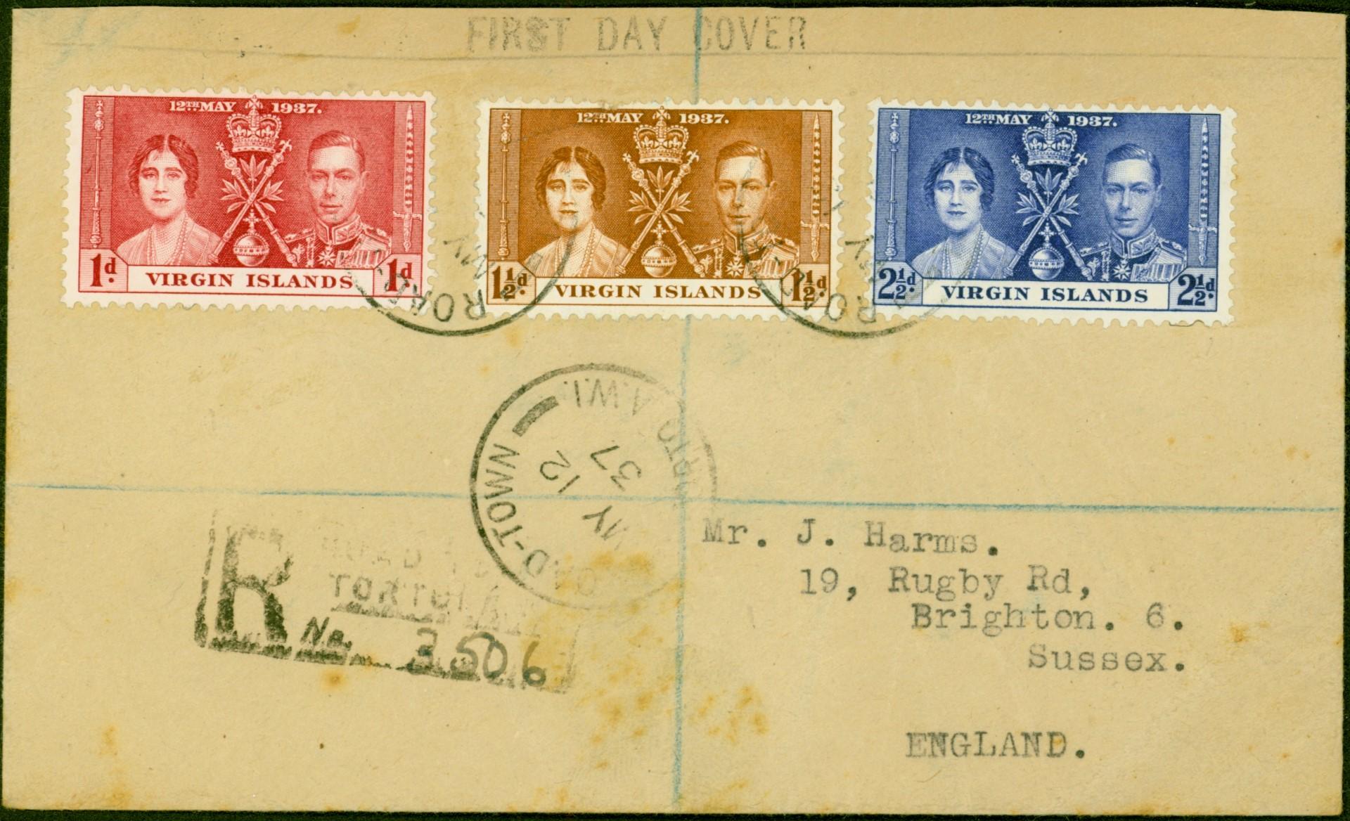British Virgins Is1937 Coronation Set of 3 on Registered 1st Day Cover to Brighton Fine
