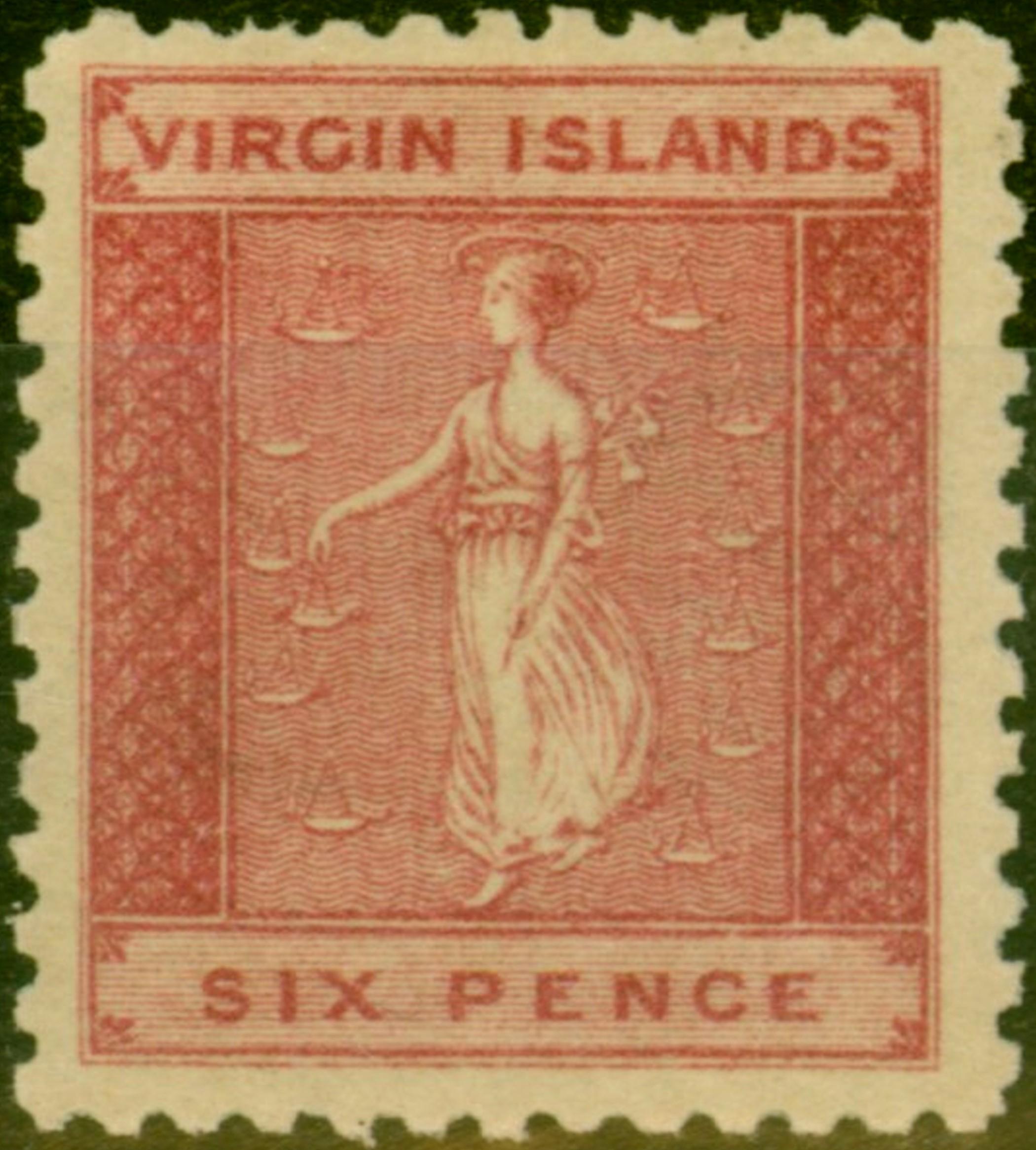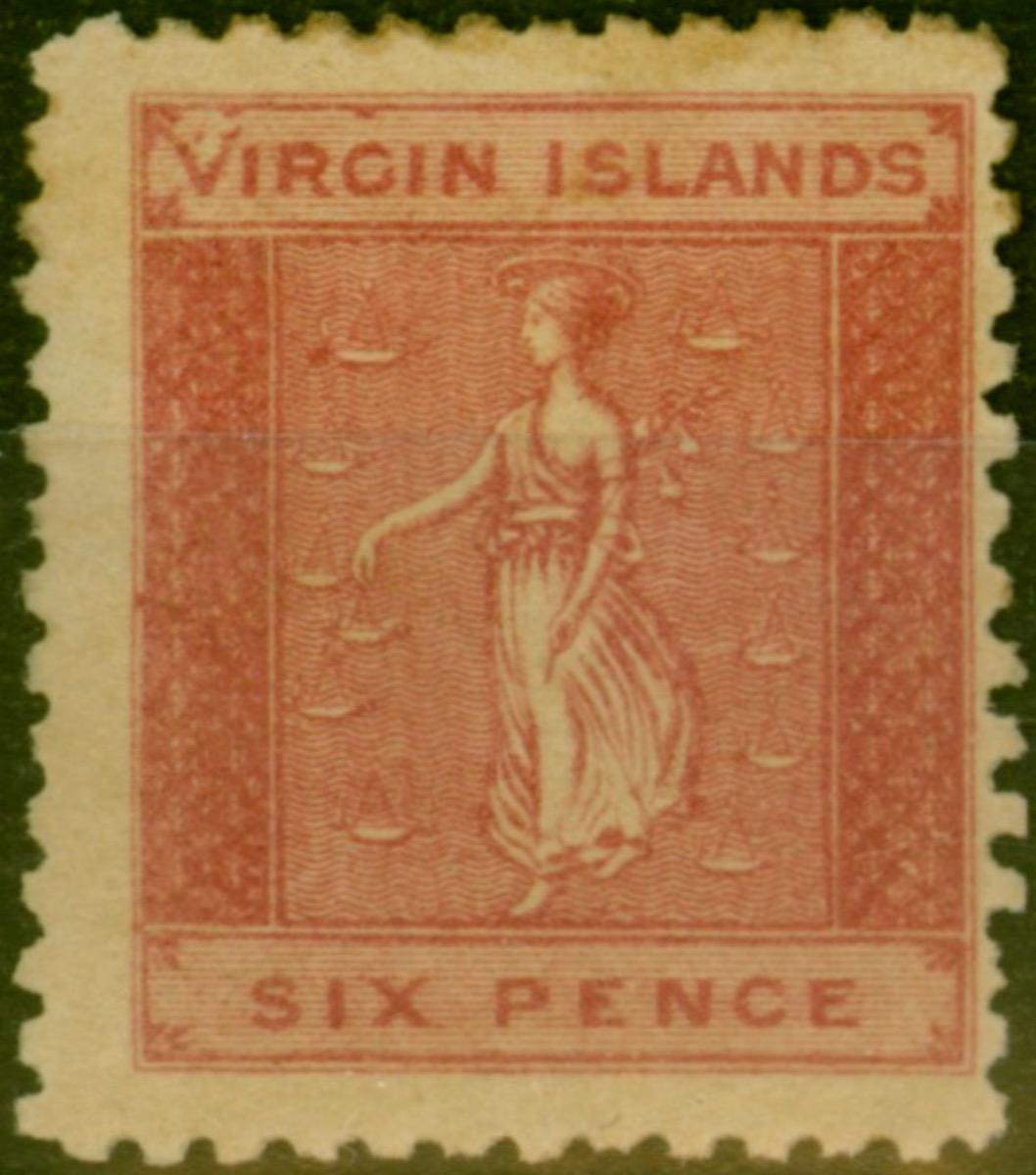 Virgin Islands 1866 6d Rose SG3a 'Large V in Virgin' Fine MM