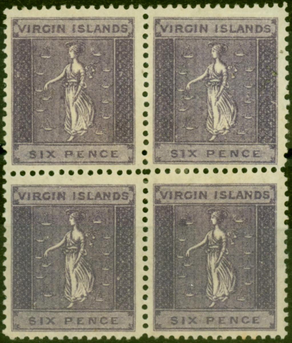 Virgin Islands 1888 4d on 1s Black & Rose-Carmine SG42 Fine MM Block of 4