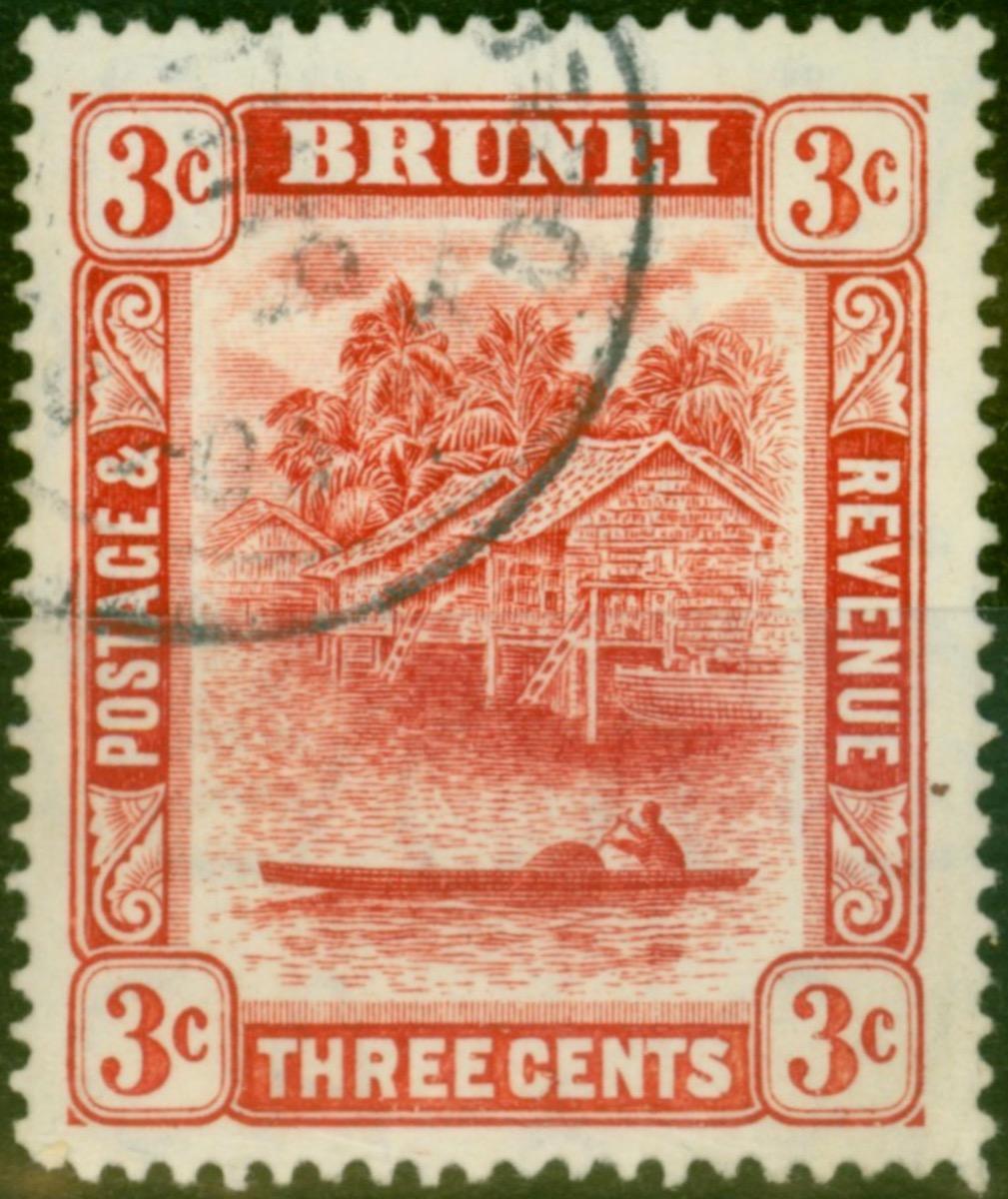 Brunei 1916 3c Scarlet SG38 Type II Fine Used