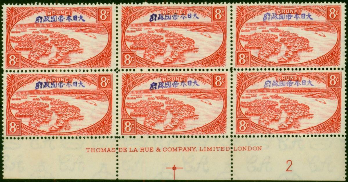 Brunei 1942 Jap Occu 8c Red SGJ10 Fine MNH Imprint Block of 6
