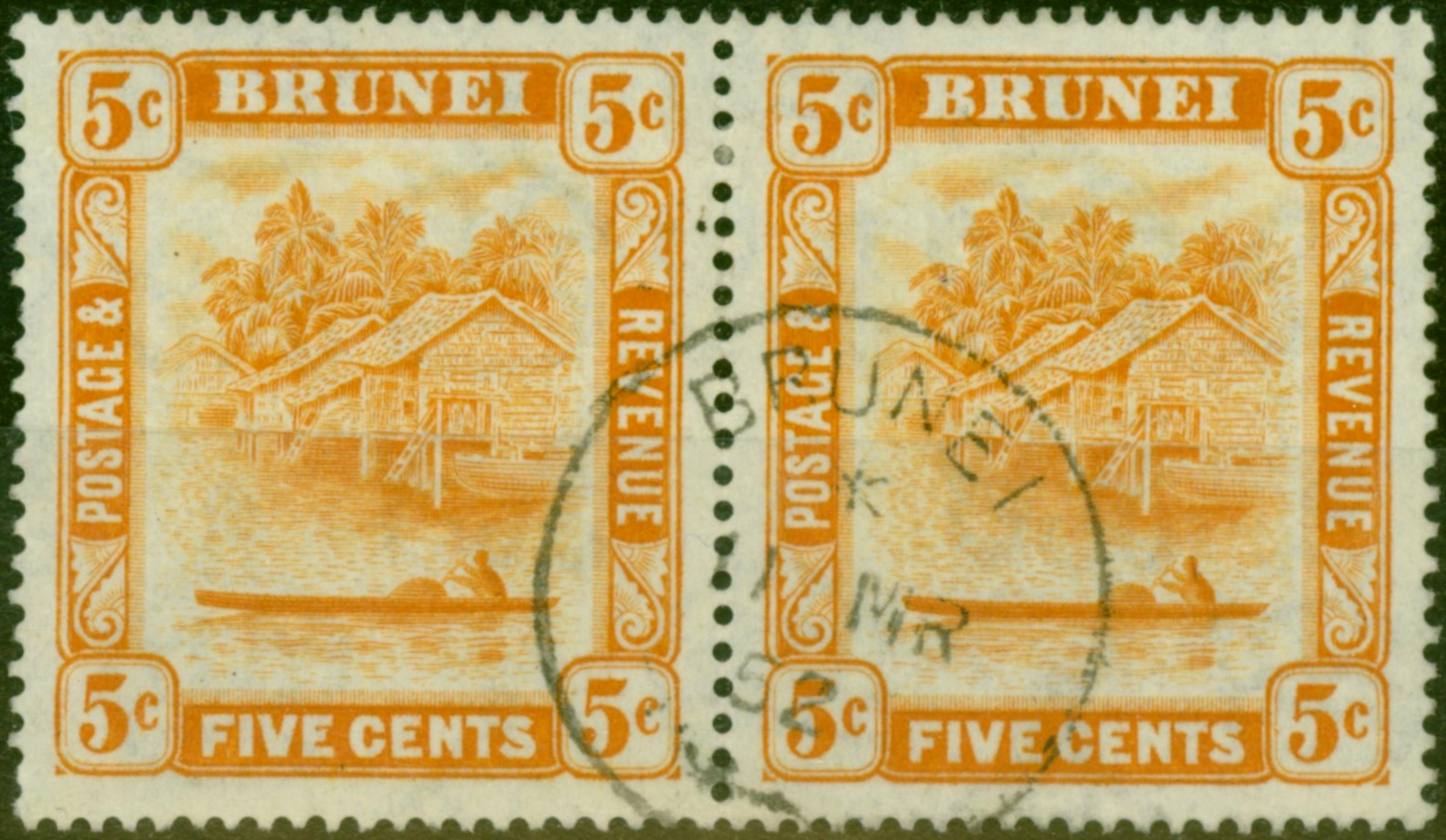 Brunei 1950 5c Orange SG82b P.14.5 x 13.5 V.F.U Pair