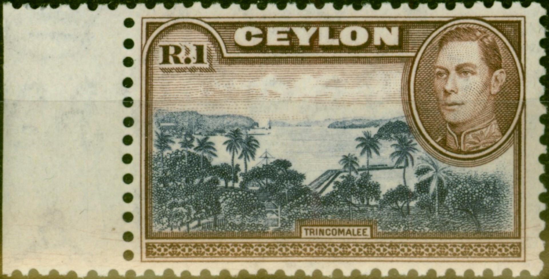 Ceylon 1944 1R Blue-Violet & Chocolate SG395a V.F MNH