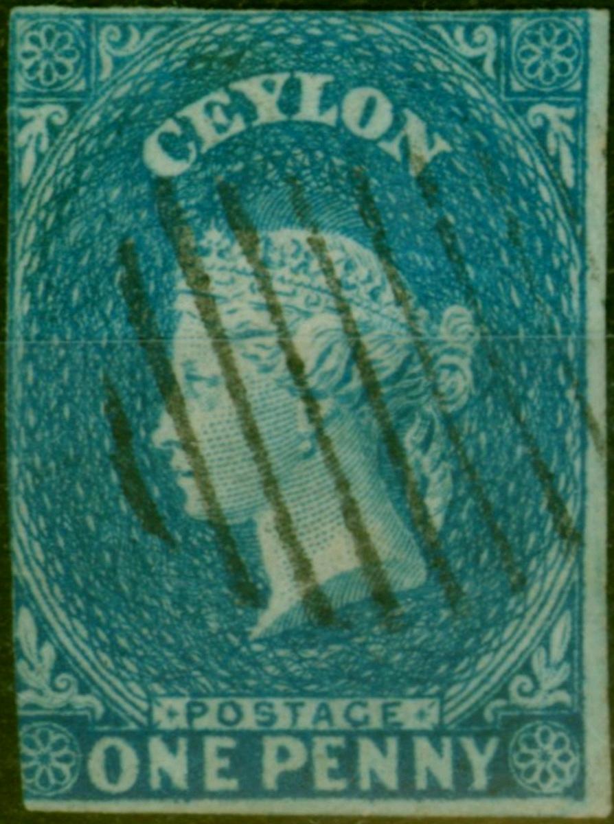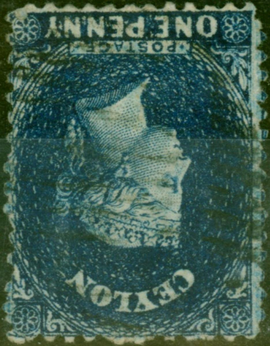 Ceylon 1867 1d Deep Blue SG63bw Wmk Inverted V.F.U