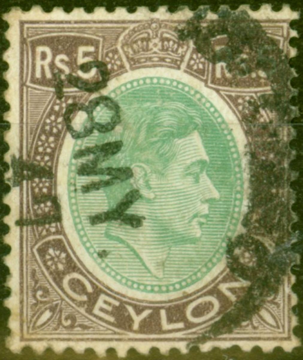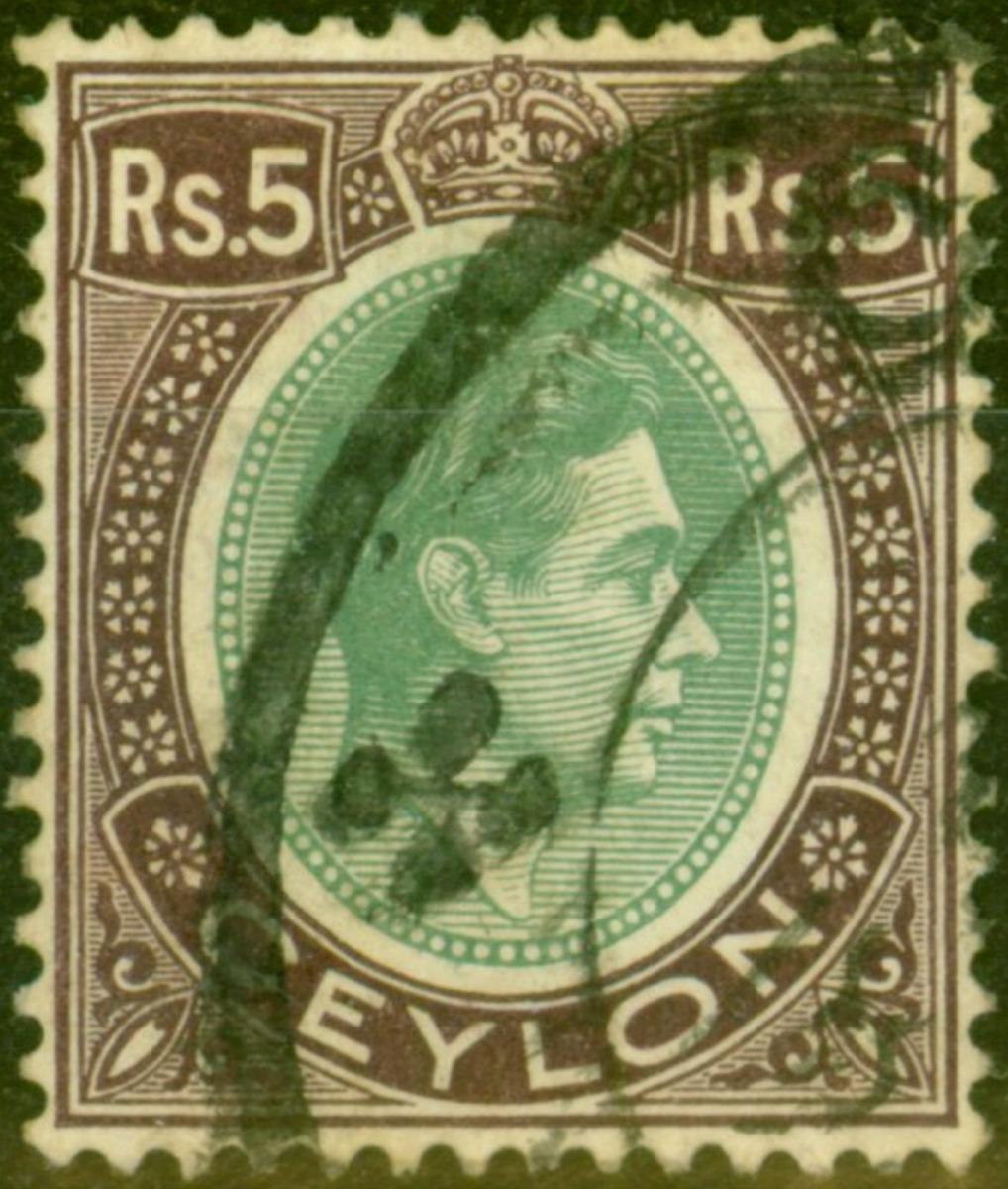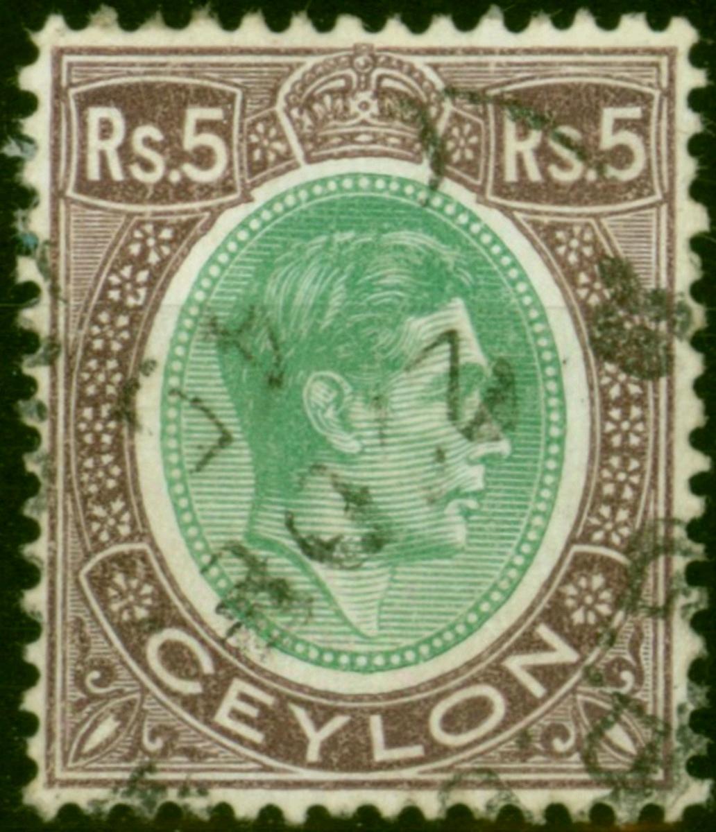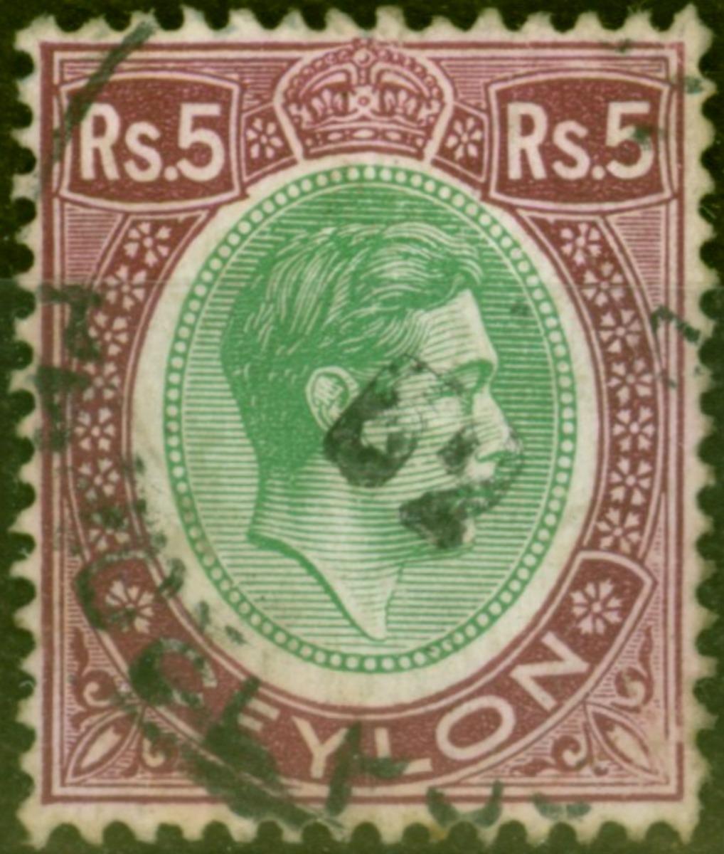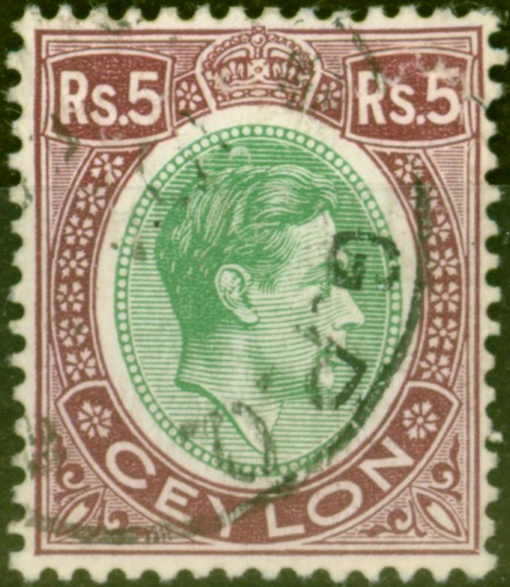 Ceylon 1938 5R Green & Purple SG397 Fine Used (3)