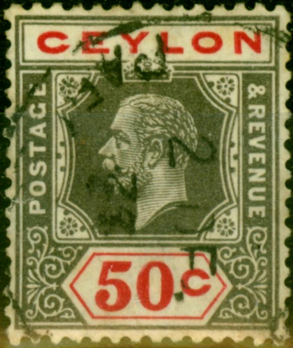 Ceylon 1932 50c Black & Scarlet SG353B Die I Good Used