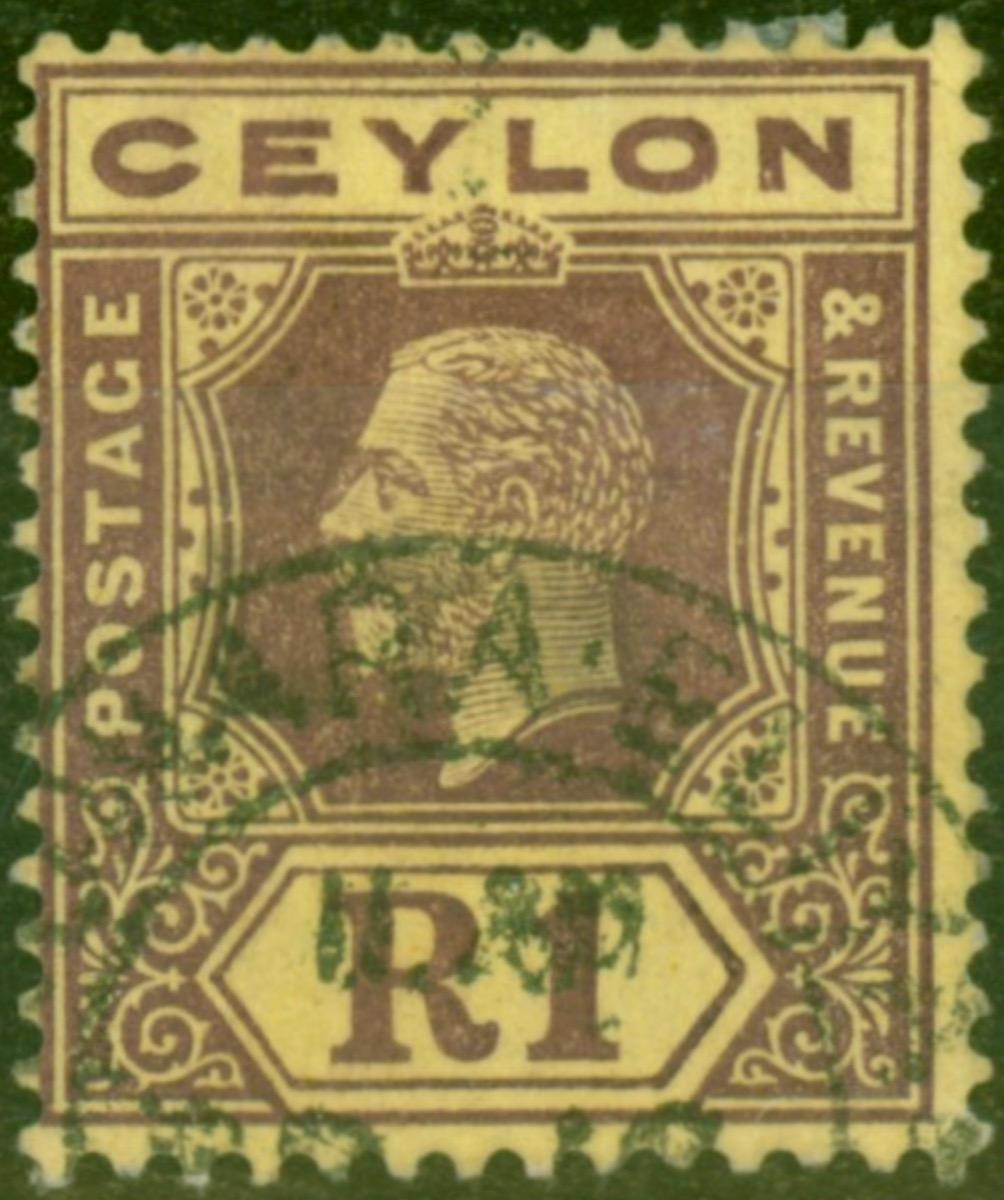 Ceylon 1923 1R Purple Pale Yellow SG354 Good Used