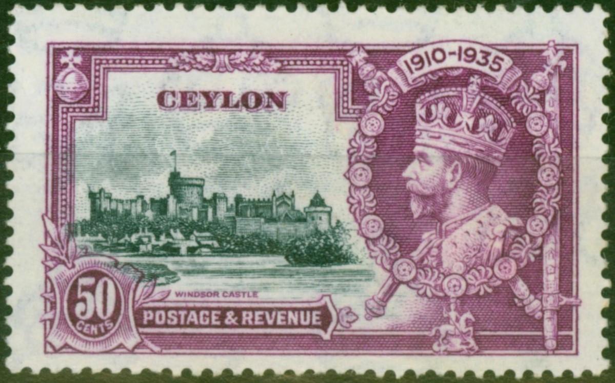 Ceylon 1935 Jubilee 50c Slate & Purple SG382f Diagonal Line by Turret Fine MM