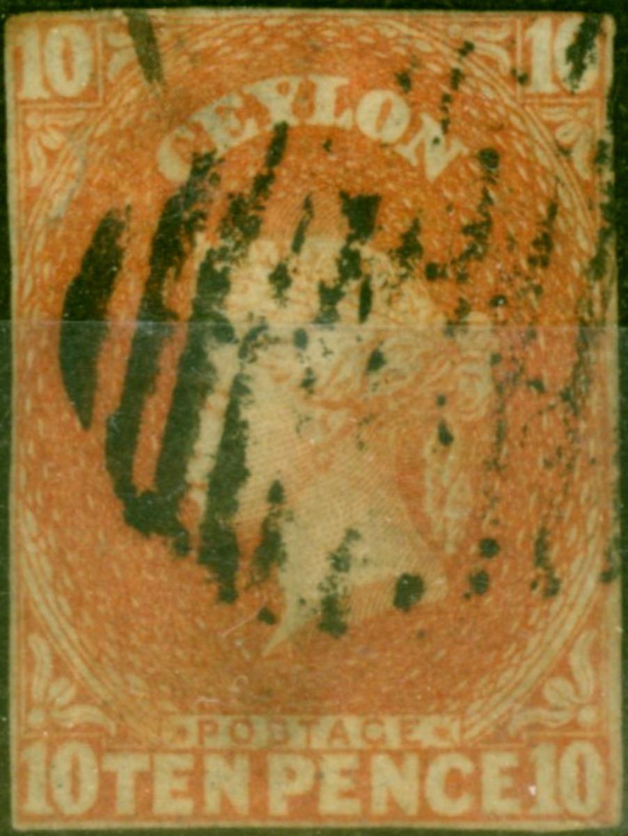 Ceylon 1857 10d Dull Vermilion SG9 Good Used