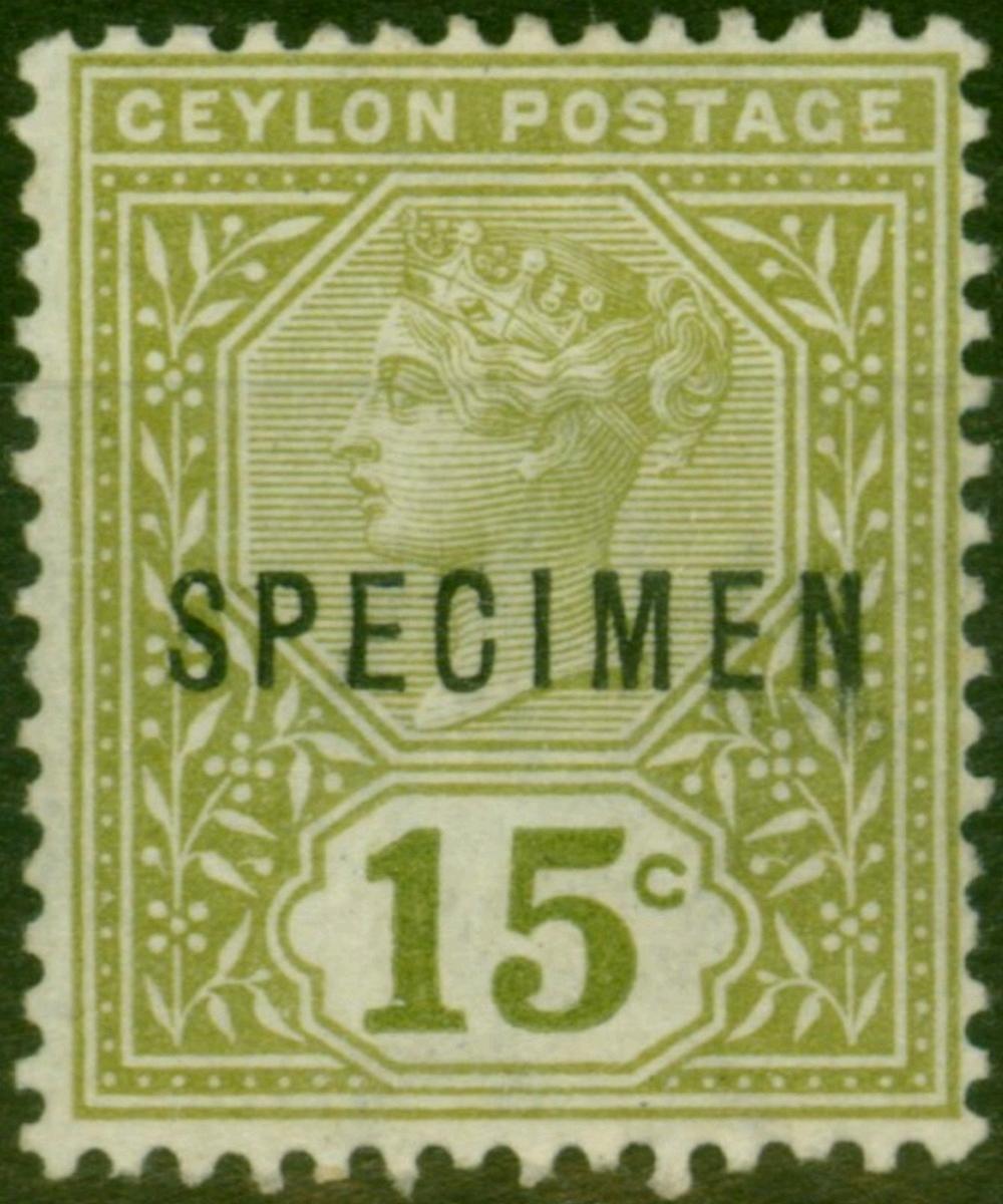Ceylon 1886 15c Olive-Green Specimen SG197s V.F VLMM