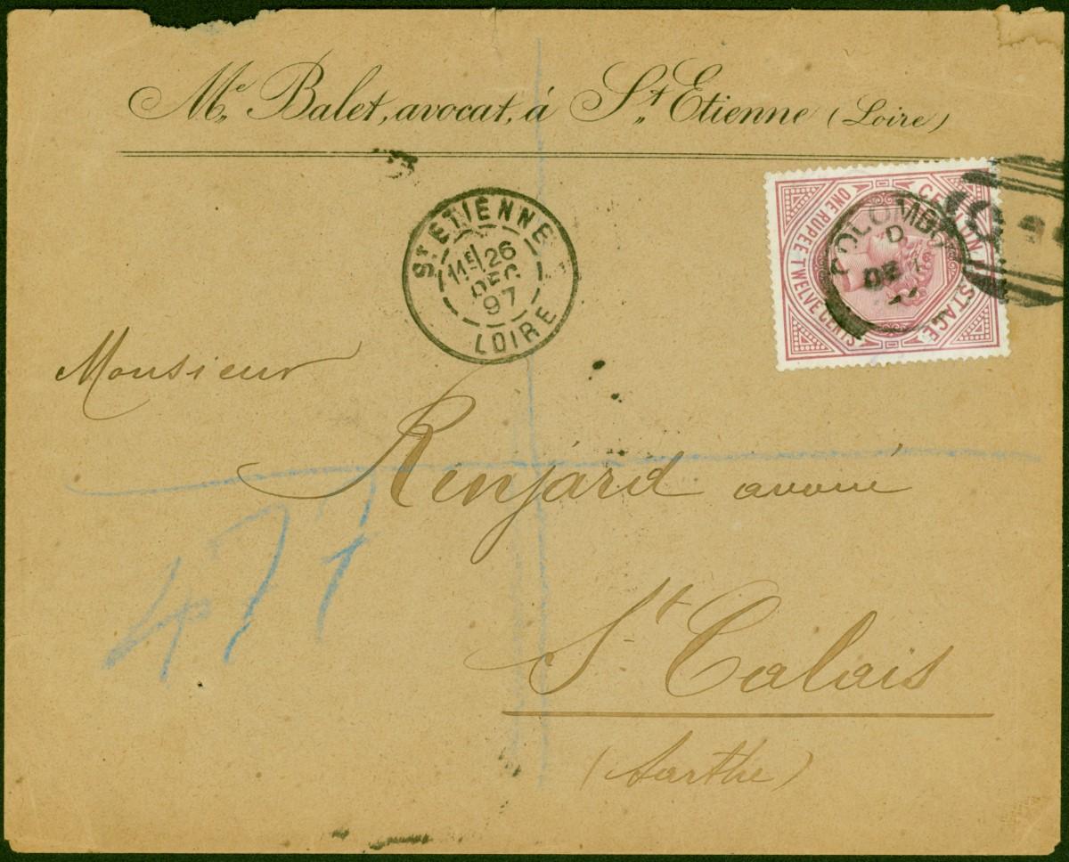 Ceylon 1897 Registered Cover to St Calais Bearing SG201 Fine & Attractive
