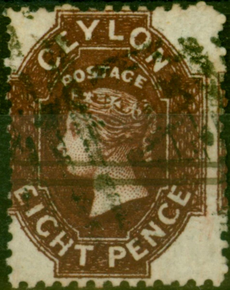 Ceylon 1867 8d Chocolate SG68ax Wmk Reversed Fine Used (2)