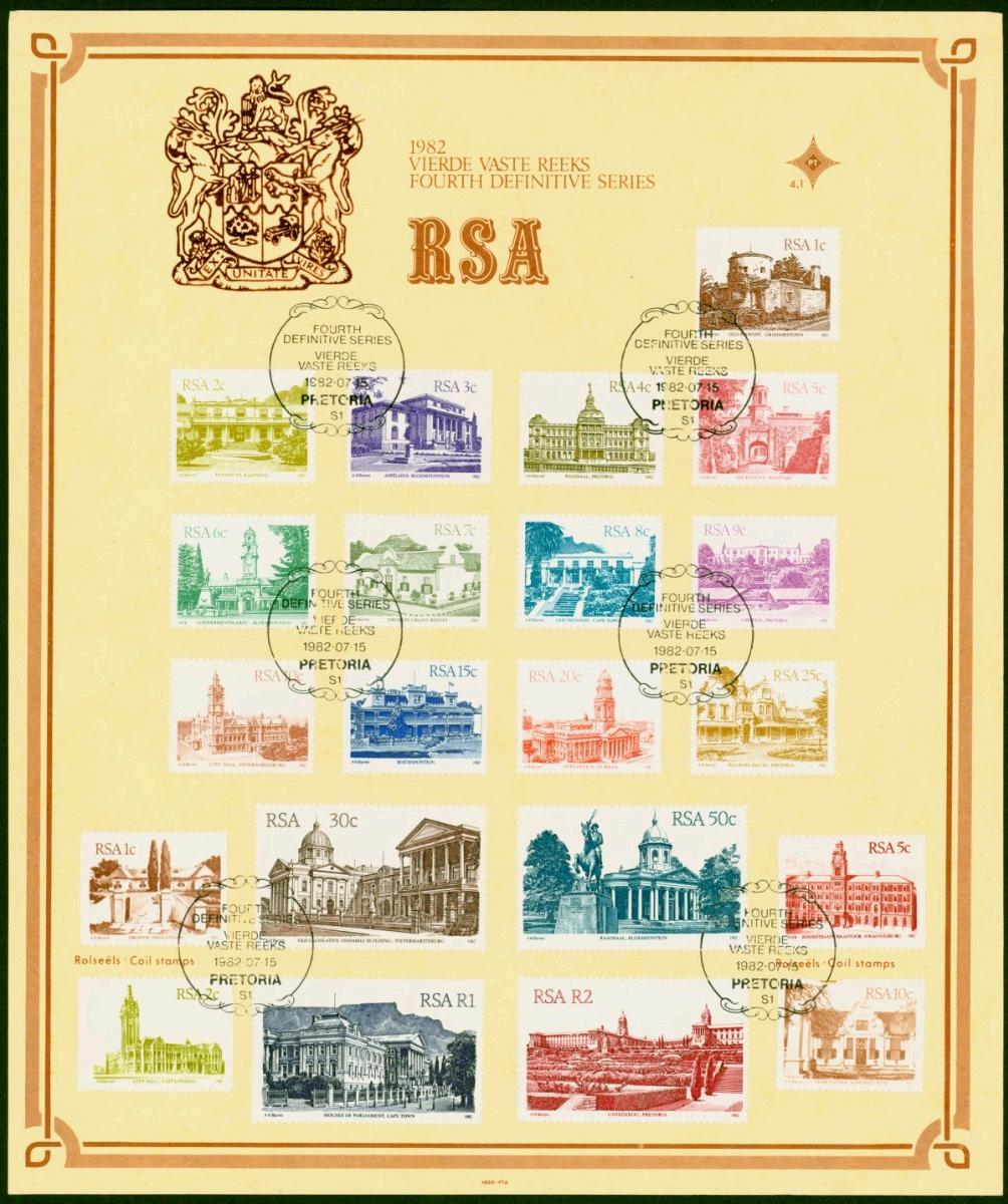 South Africa 1982 Architecture 1st Day Cover Card Set of 21 Including Coils SG511-531 V.F.U