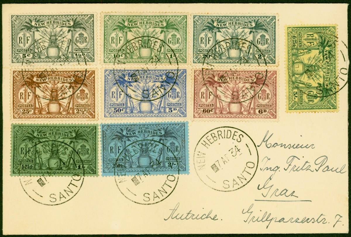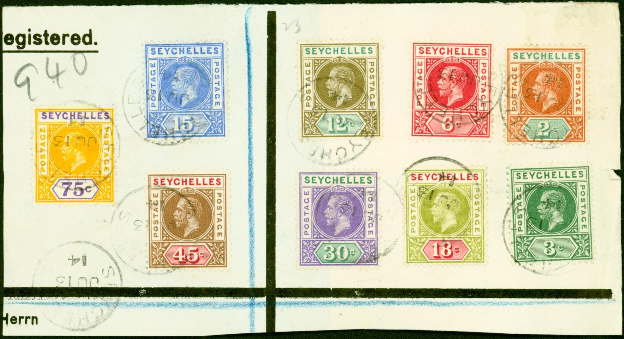 Seychelles 1912-13 Set of 9 to 75c SG71-79 on Part Reg Cover/Large Piece to Germany