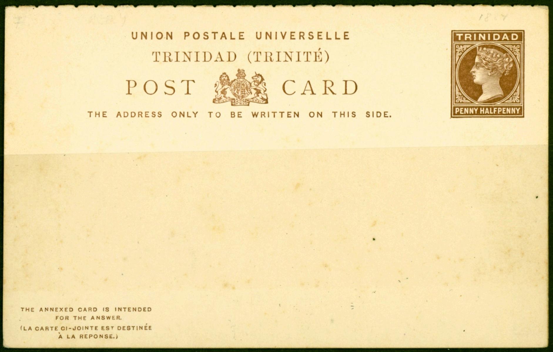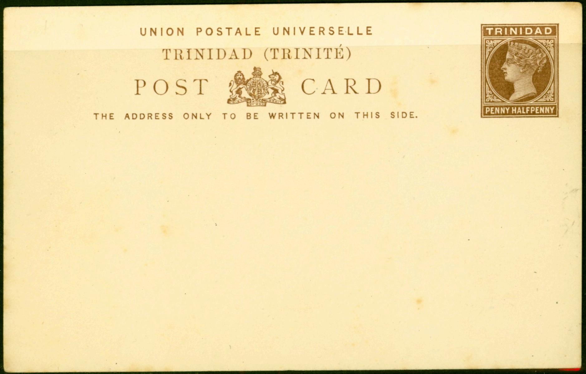 Trinidad 1884 1 1/2d Postcard Fine